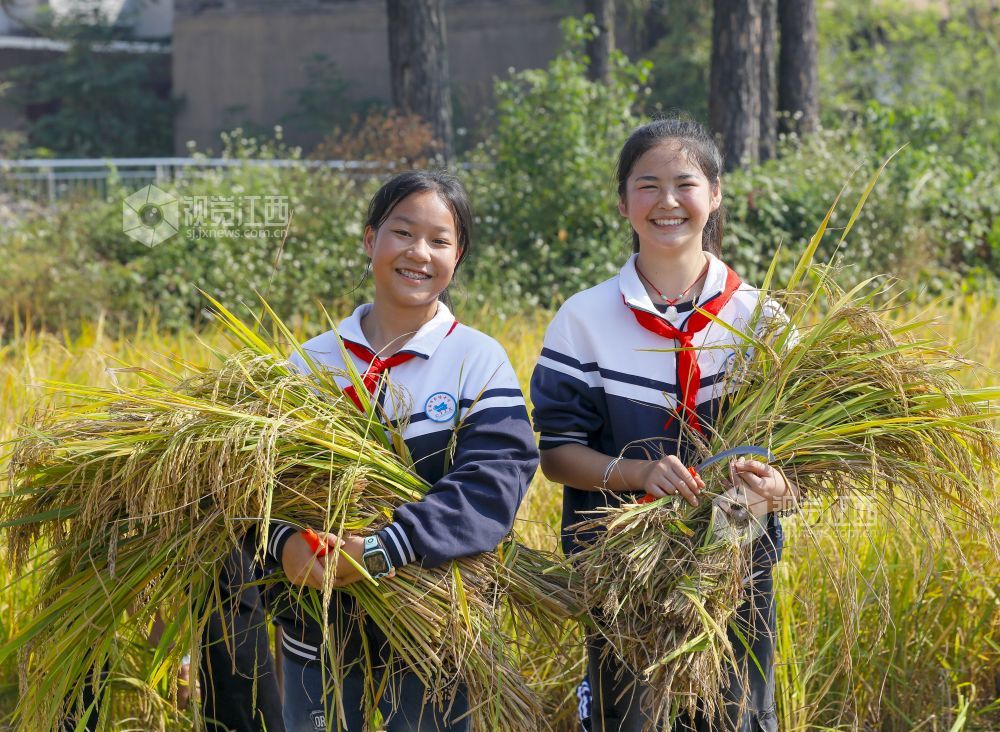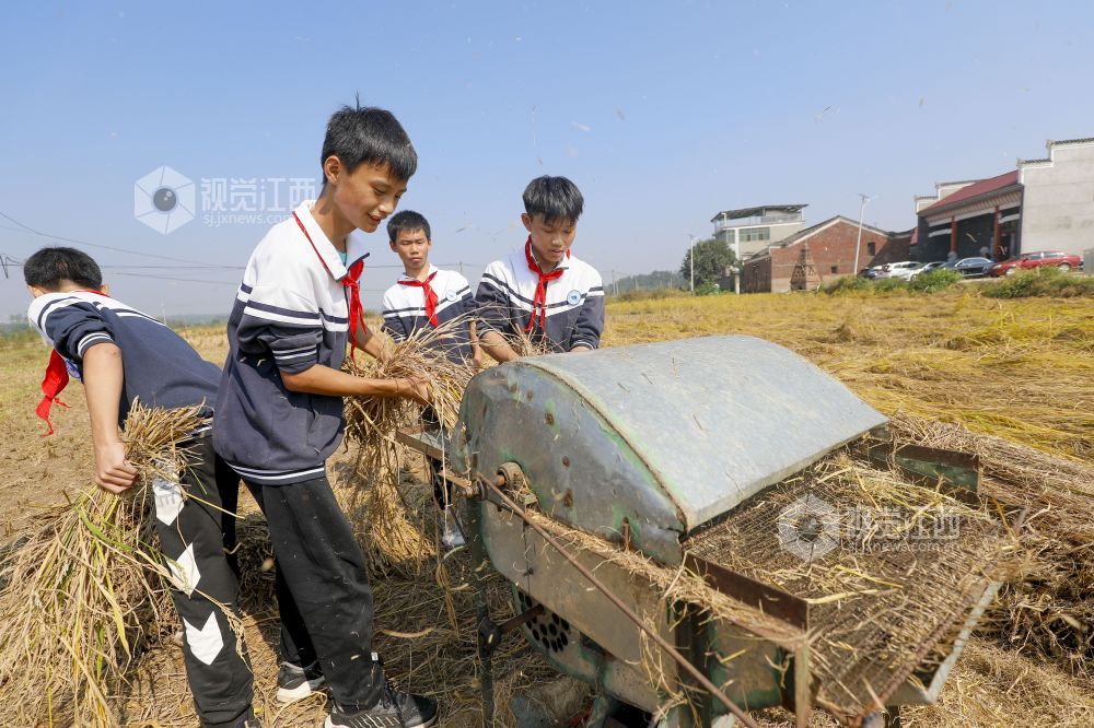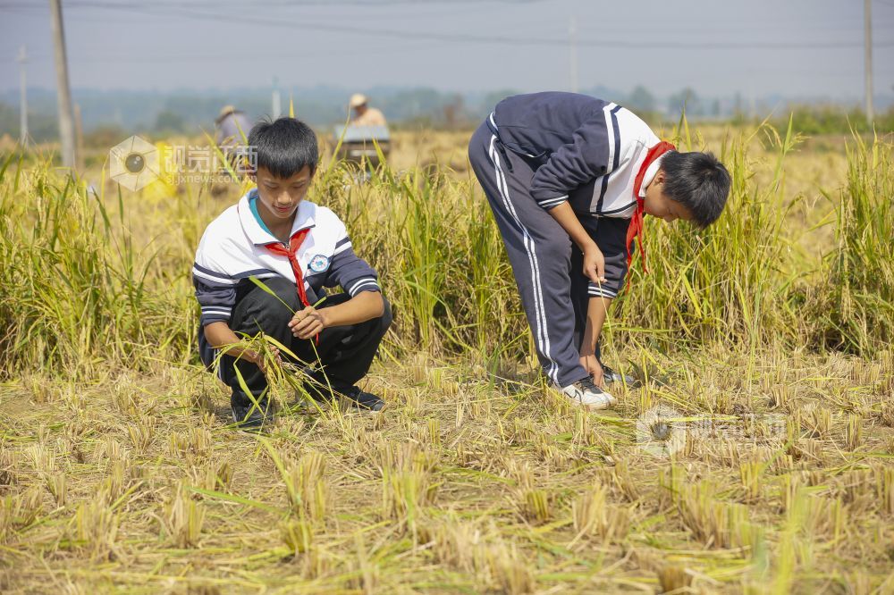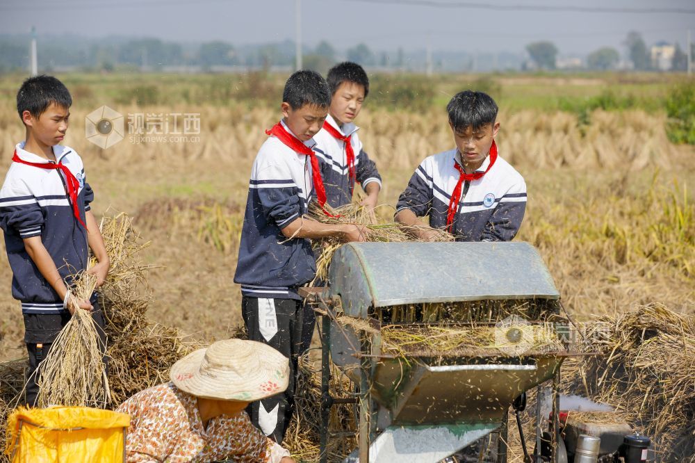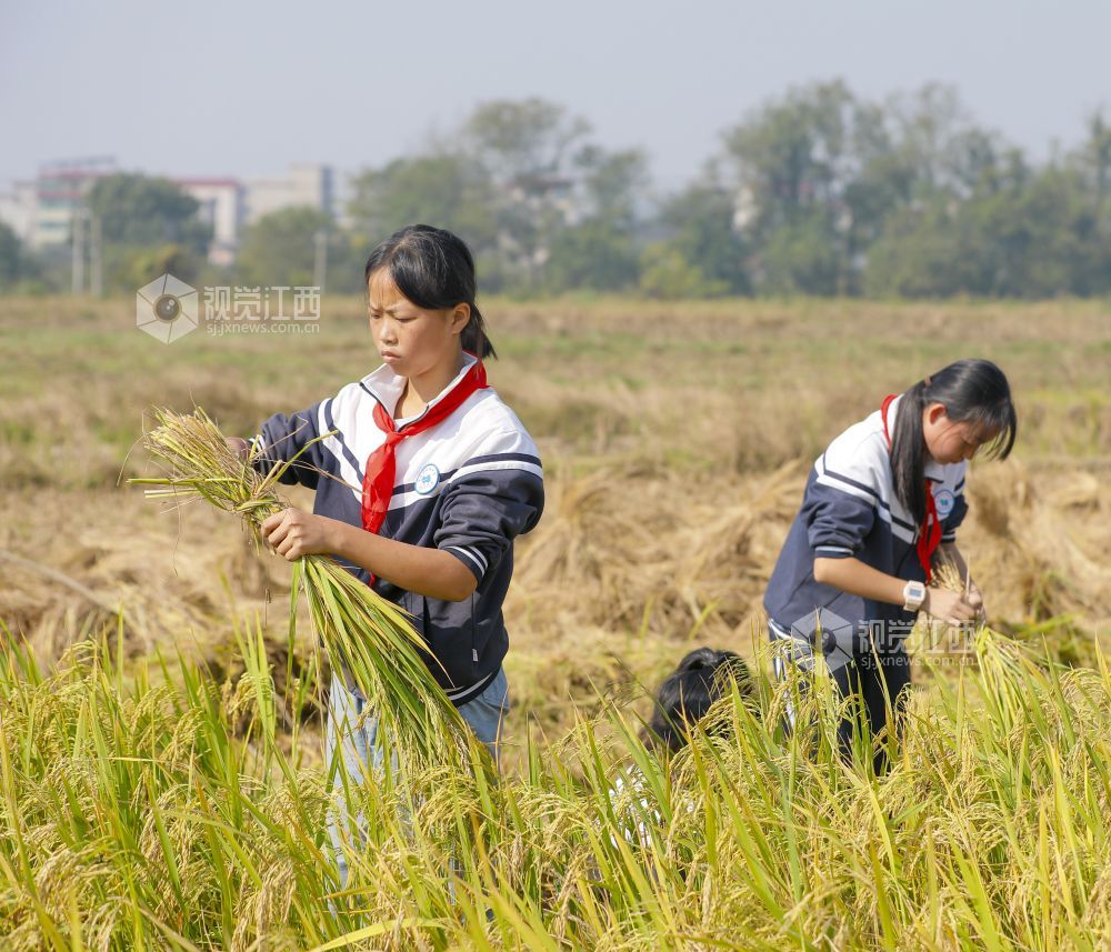 2023年10月18日,江西省吉安市吉州区长塘中学的师生在校外劳动实践基地开展田间课堂活动,通过手工收割稻谷等体验传统农耕文化、感受劳动乐趣,知晓每一粒粮食的来之不易。