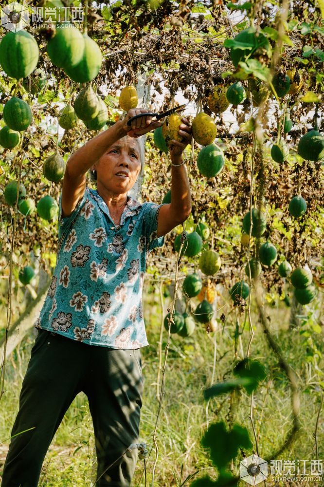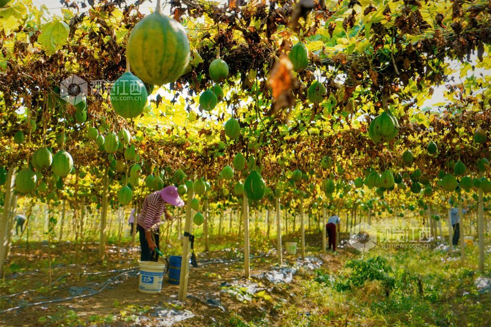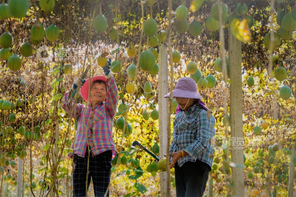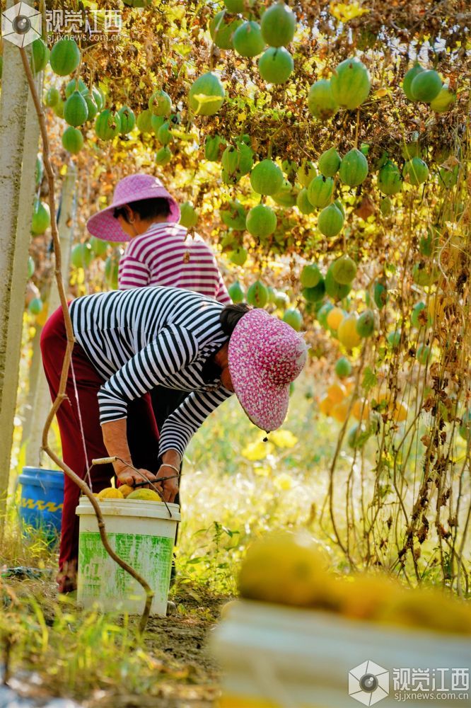 2023年10月18日,江西省新余市渝水区人和乡观下村300余亩瓜蒌种植基地的瓜蒌迎来采收期,村民们正在抢抓晴好天气采摘瓜蒌,小小的瓜蒌成了村民“增收果”。