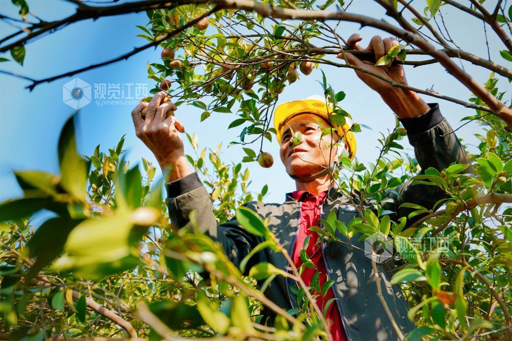 眼下正值油茶果采摘的季节,2023年10月18日,在江西省新余市水北镇琴山村油茶基地,农户们穿梭在成片的茶油树之间,采摘、装袋、搬运,动作迅速而熟练,脸上洋溢着丰收繁忙的喜悦。