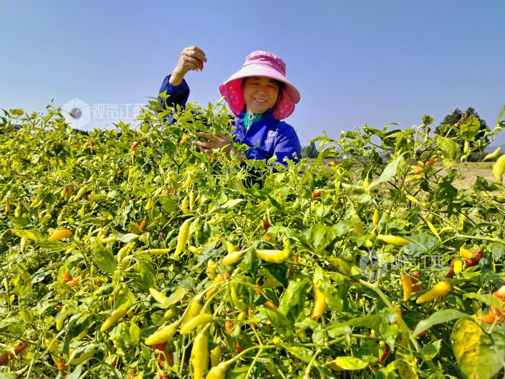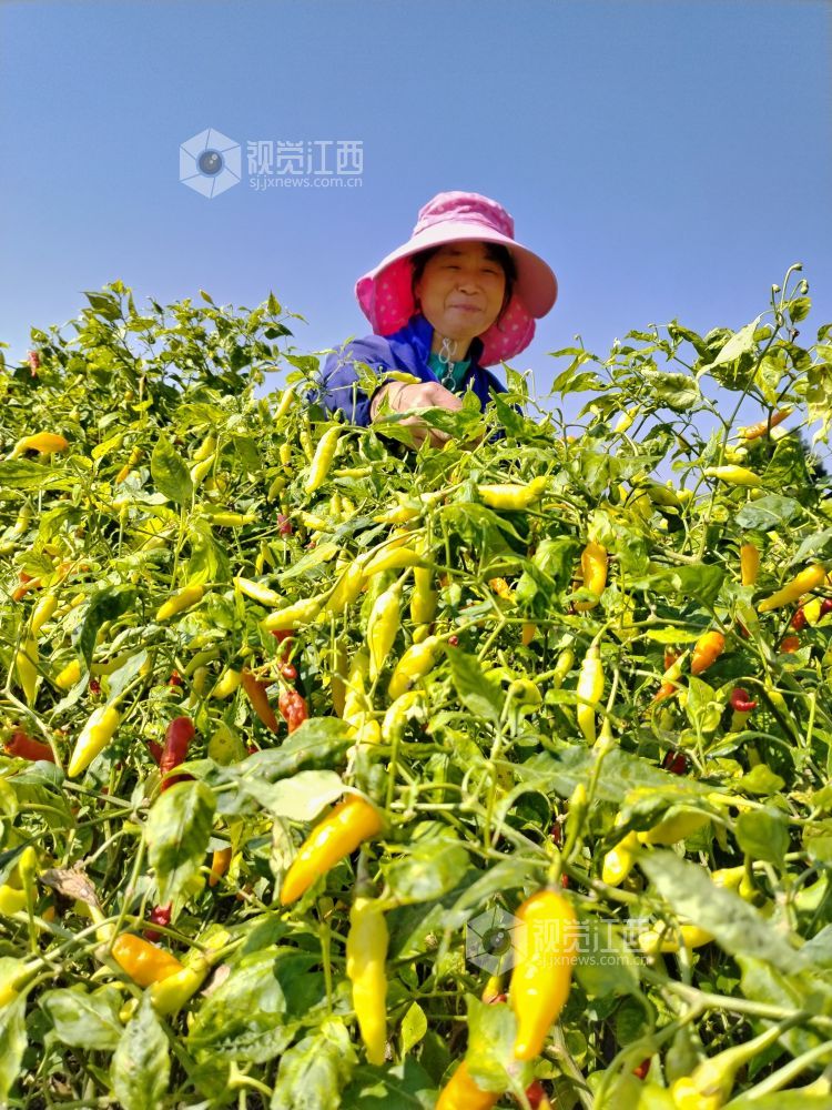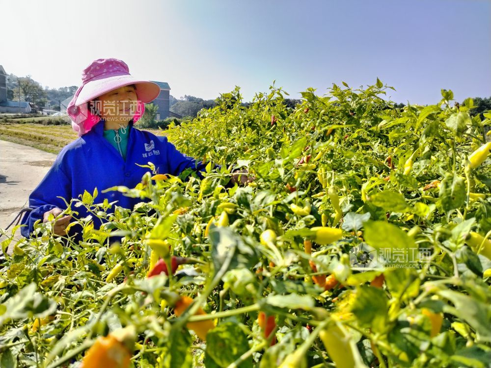 霜降前后秋色好,紫菜黄蕨更宜收。 10月22日,江西省吉安市泰和县苏溪镇农民在菜园采摘辣椒,尽享秋收的快乐。