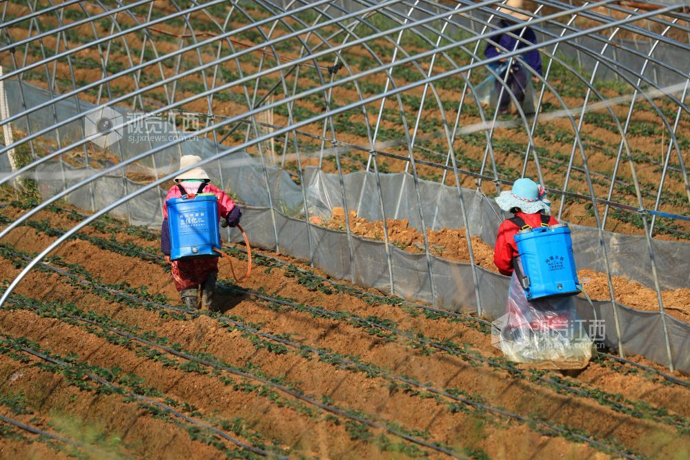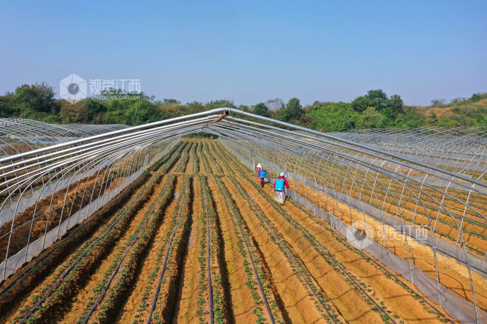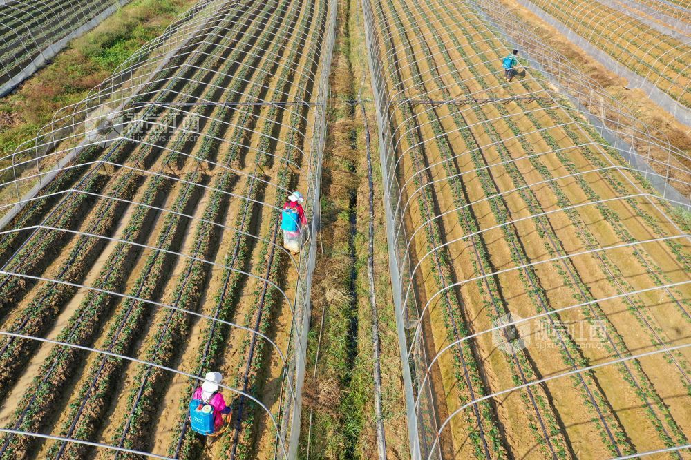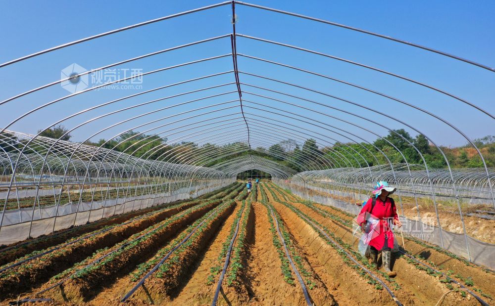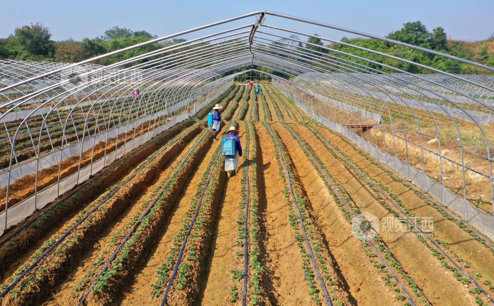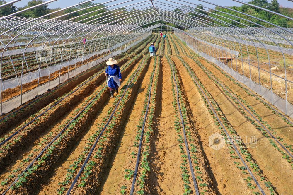 10月22日,江西省吉安市泰和县塘洲镇洲头村草莓种植基地,农民正在管护草莓。近年来,泰和县积极发展草莓种植产业,解决农村群众就业增收,助力乡村振兴。