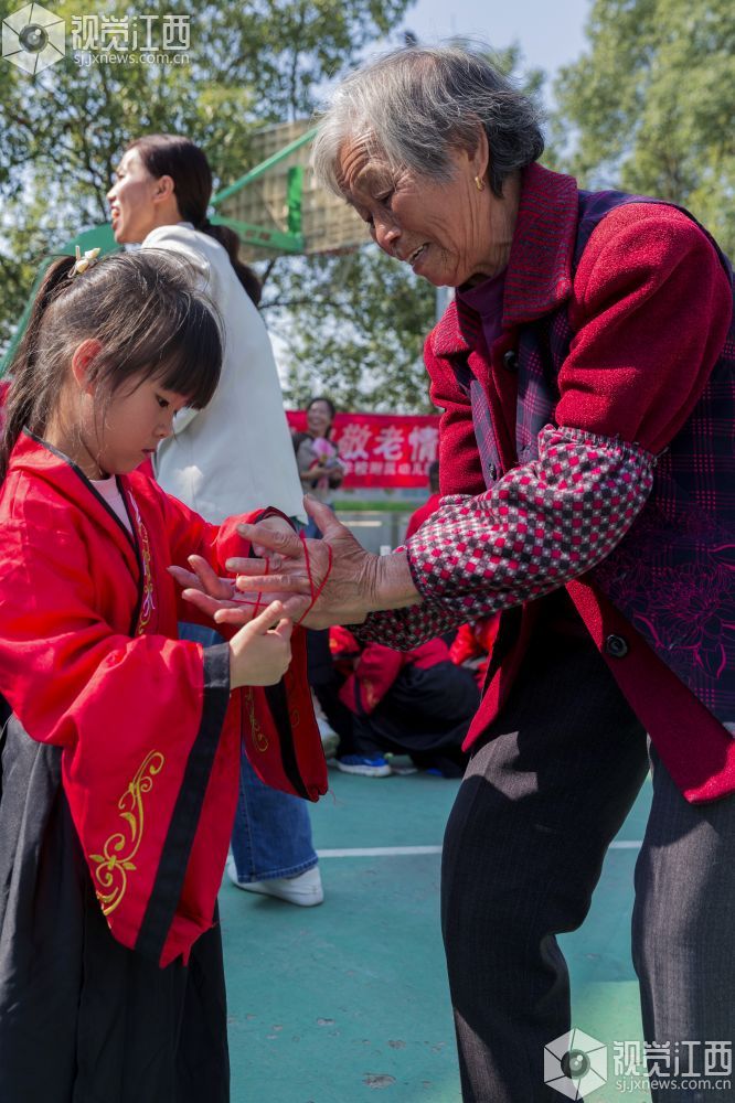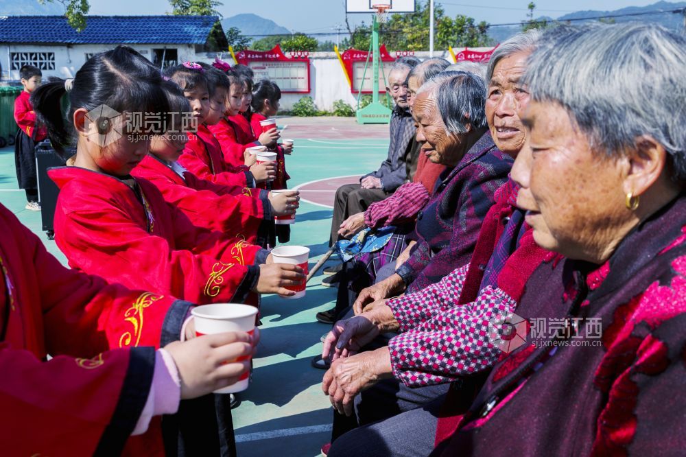 10月23日上午,在江西省新余市仙女湖区观巢镇南布村委颐养之家,观巢幼儿园的小朋友和镇村敬老活动志愿者正在给老人们举办丰富多彩的敬老活动,现场情意浓浓,喜气洋洋,好不热闹。