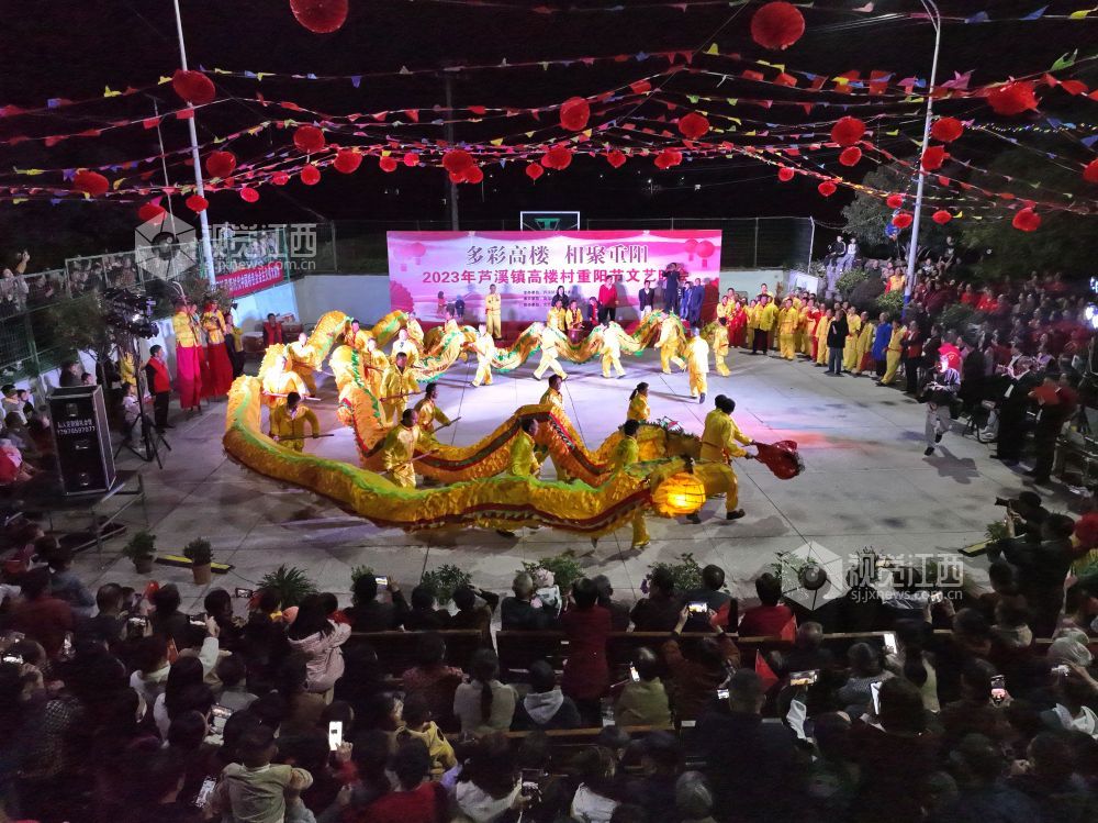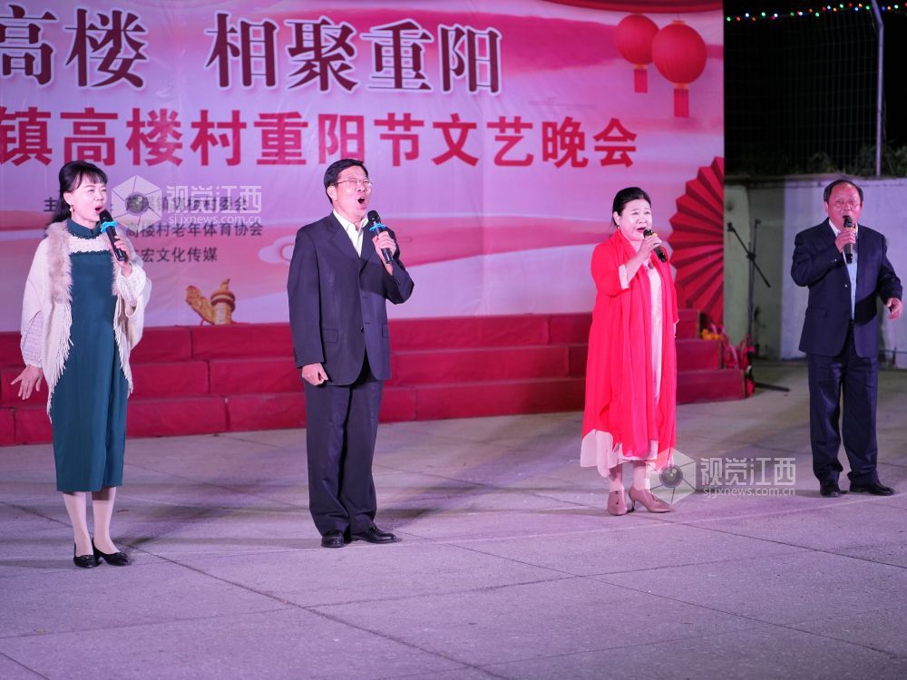 2023年10月22日晚,江西省萍乡市芦溪县芦溪镇高楼村举行“多彩高楼·相聚重阳”重阳节文艺晚会,村民们自编自导表演各类精彩节目,向全村的老年人送上节日的祝福。