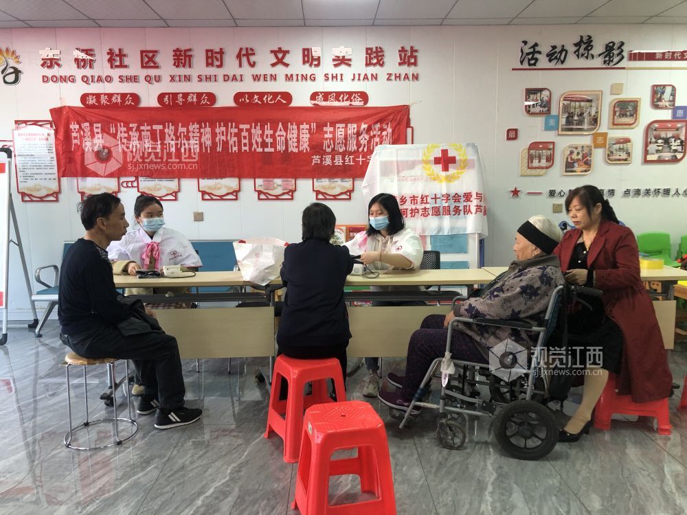 2023年10月23日,江西省萍乡市芦溪县芦溪镇东桥社区党委联合芦溪县红十字会开展“情暖重阳节,义诊送健康”活动,社区党员志愿者和医务人员免费给居民测血糖、量血压、中医特色理疗、理发等服务,帮助老年人科学掌握治疗、预防、保健、养生等方面的知识。