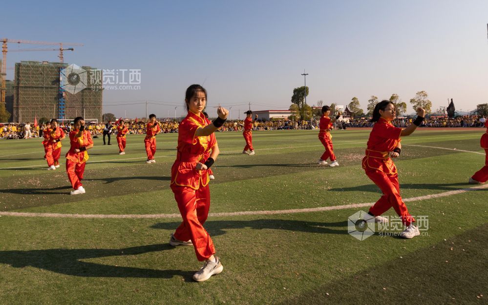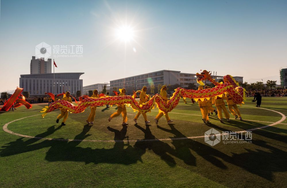 11月1日,在江西省永新县永新中学,孩子们正在进行舞龙、武术等练习。