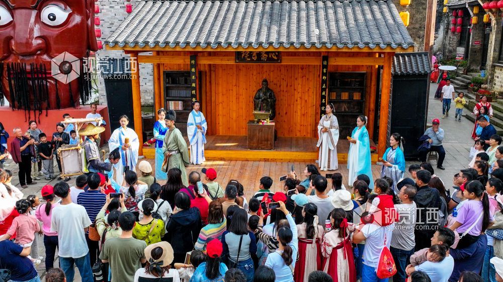 大型沉浸式实景体验空间《流芳》火热上演,从开篇的董氏九先贤、明代大旅行家徐霞客游历流坑、琅琅读书声中学子们略显调皮的嬉戏打闹,让游客身临其境,漫步历史长河,触摸千年文脉。游客们耳闻湖上泛舟的吟诵,目睹学子金榜题名的喜悦,参与千金选婿的盛典,品尝醉不思归的美酒,感受非遗文化的传承。这里历史悠久、文化底蕴深厚,被誉为“千古第一村”。