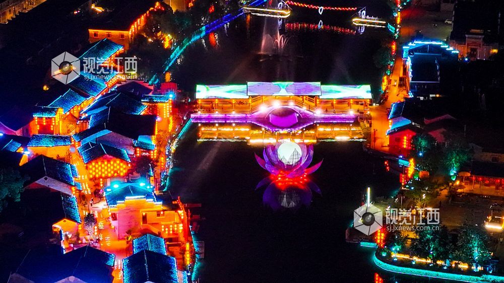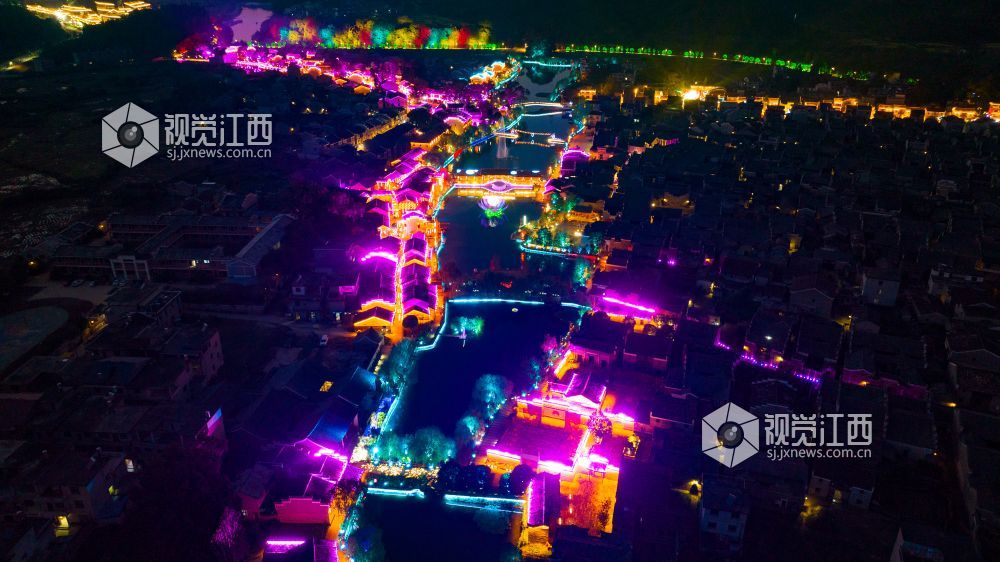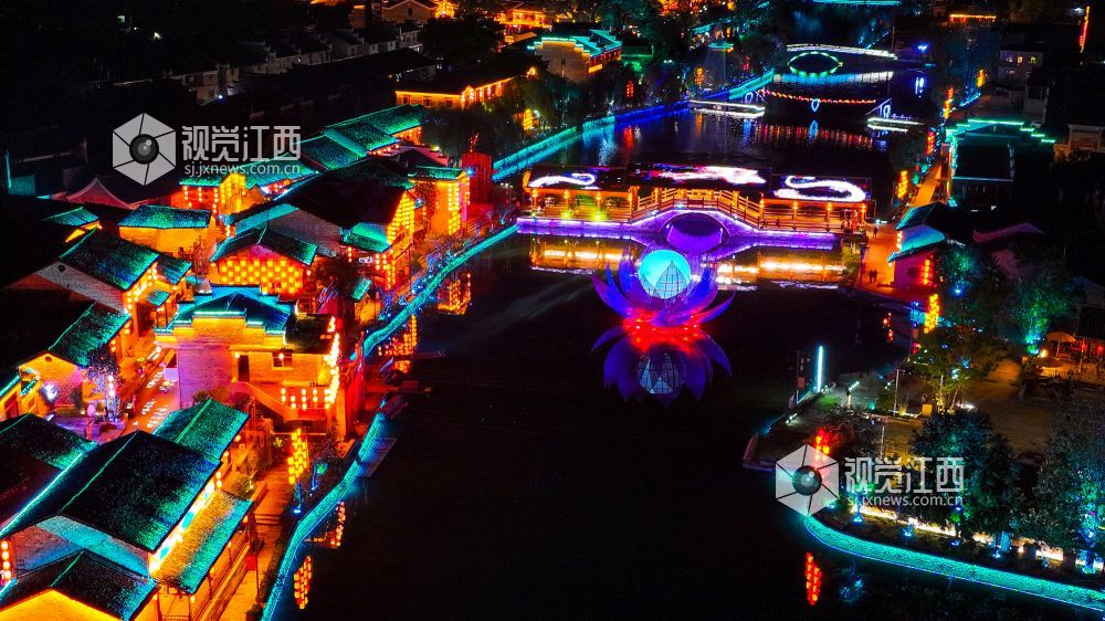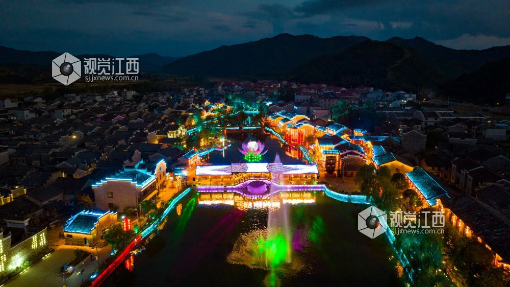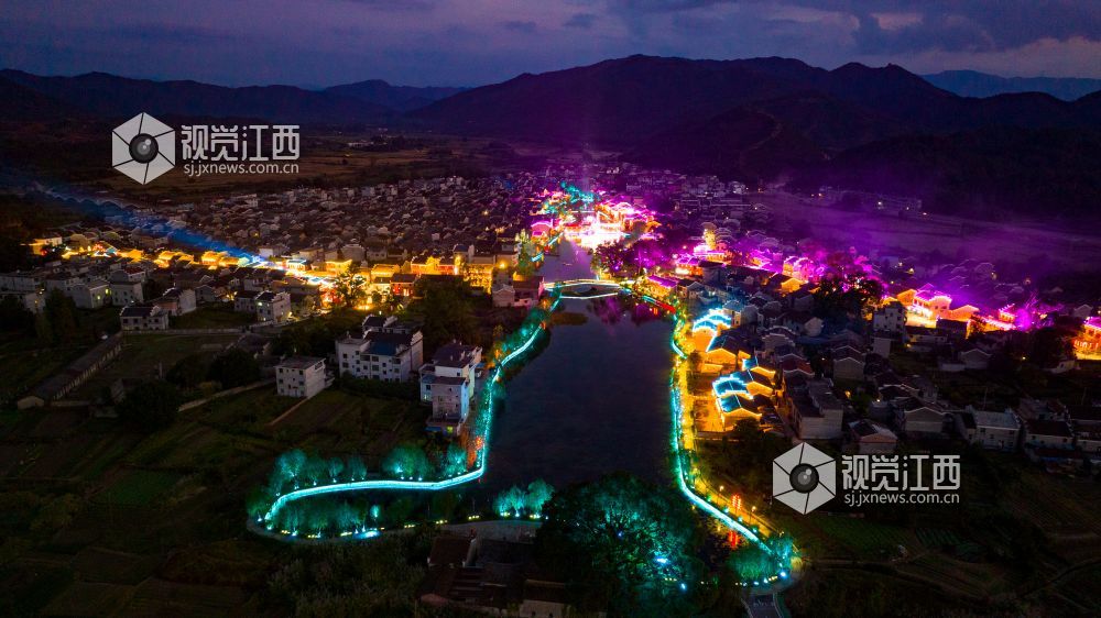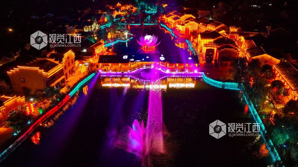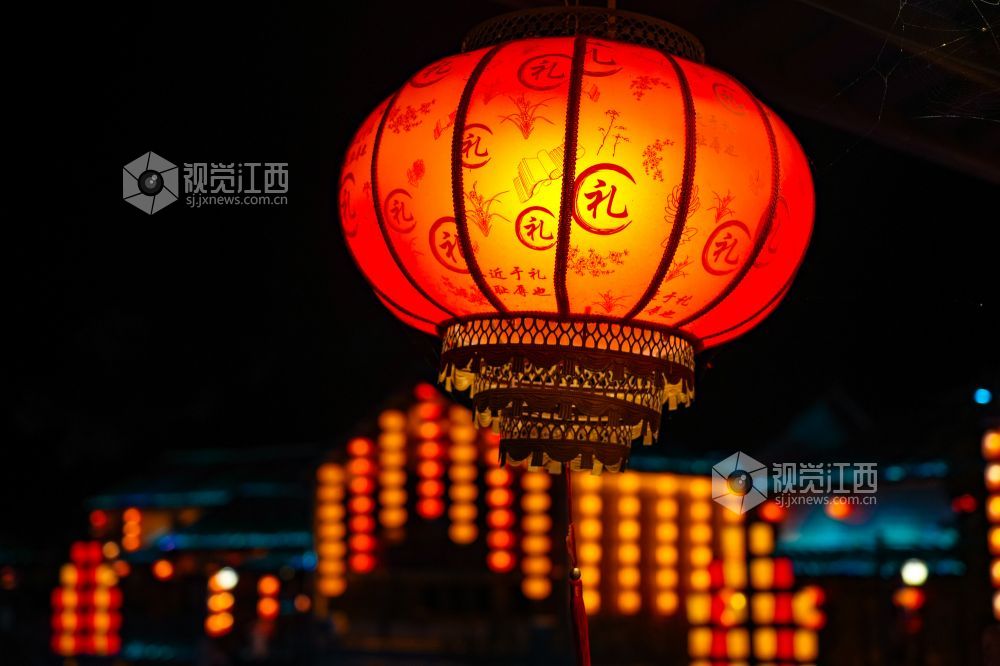 夜幕降临,古村规模宏大的传统赣派建筑在现代灯光的装扮下,分外迷人和美丽。万千盏华灯亮起,平静的龙湖上雾色氤氲,美轮美奂的光影点亮夜空。流坑古村变身巨型灯会现场,一步一景美不胜收。