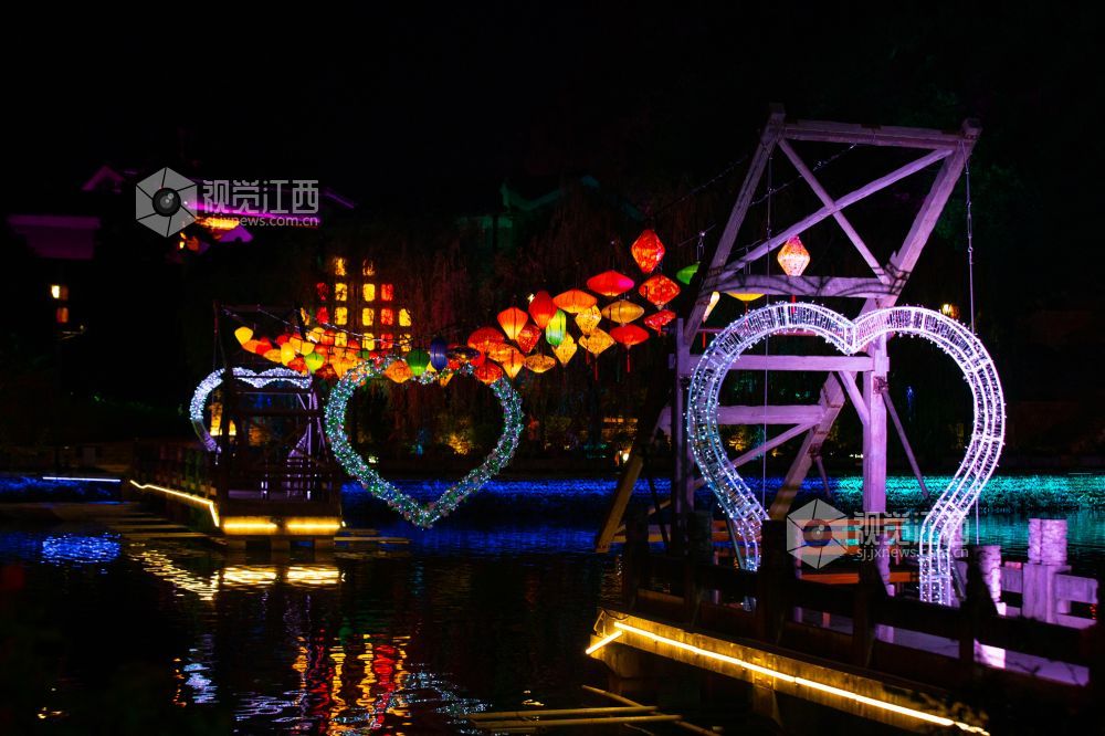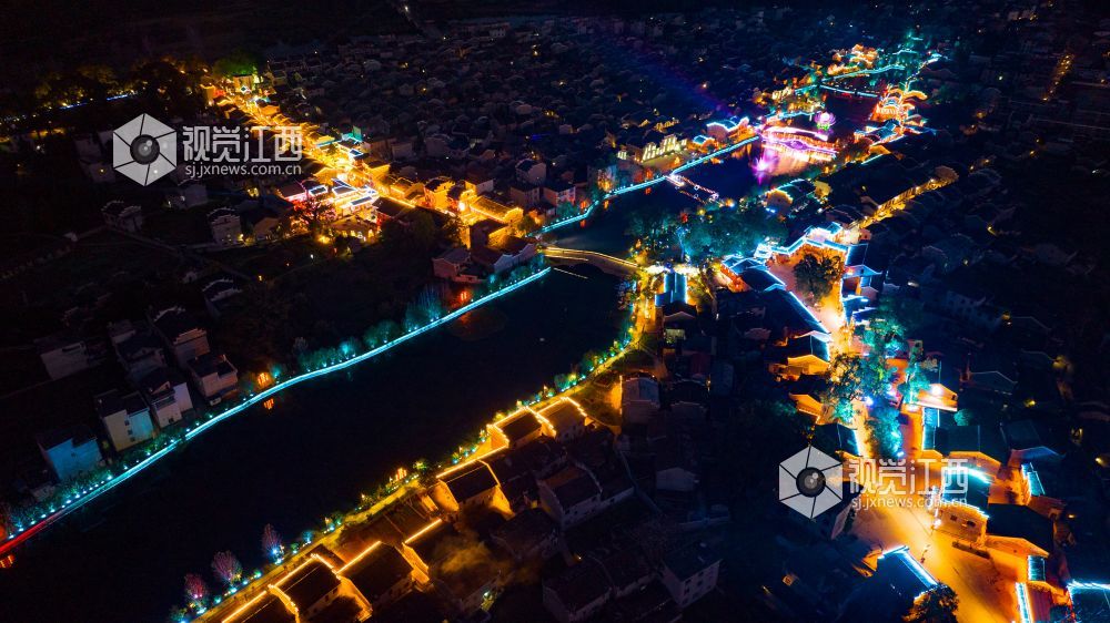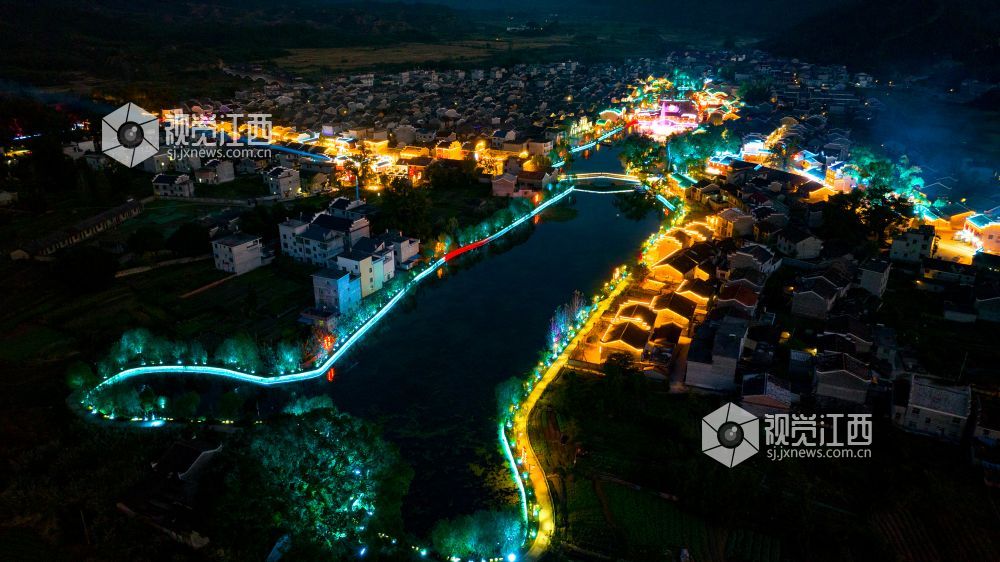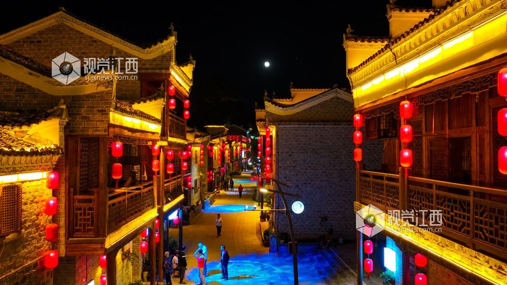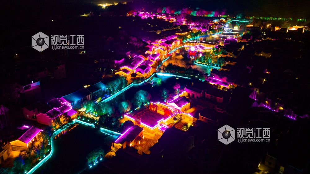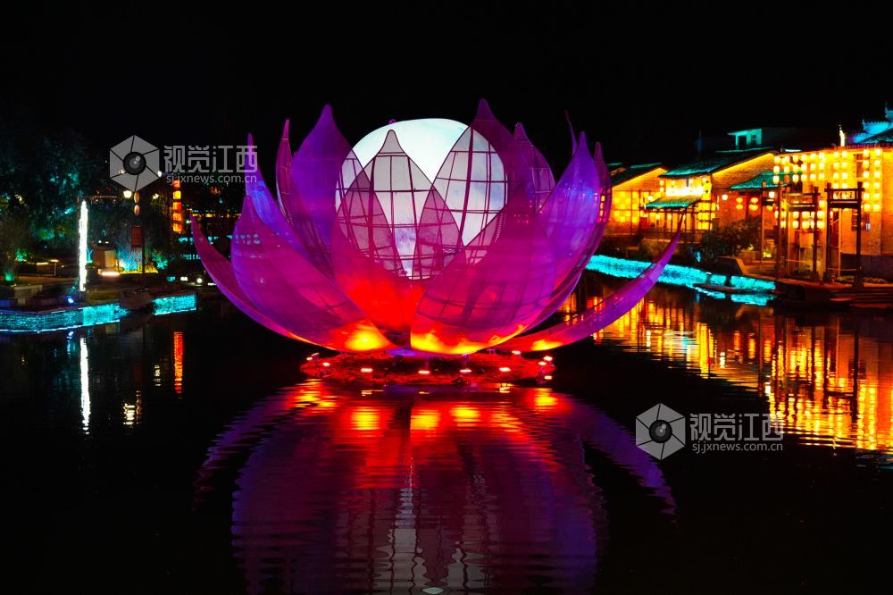 夜幕降临,古村规模宏大的传统赣派建筑在现代灯光的装扮下,分外迷人和美丽。万千盏华灯亮起,平静的龙湖上雾色氤氲,美轮美奂的光影点亮夜空。流坑古村变身巨型灯会现场,一步一景美不胜收。