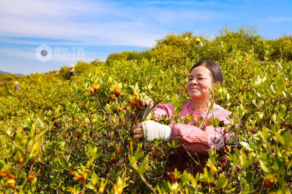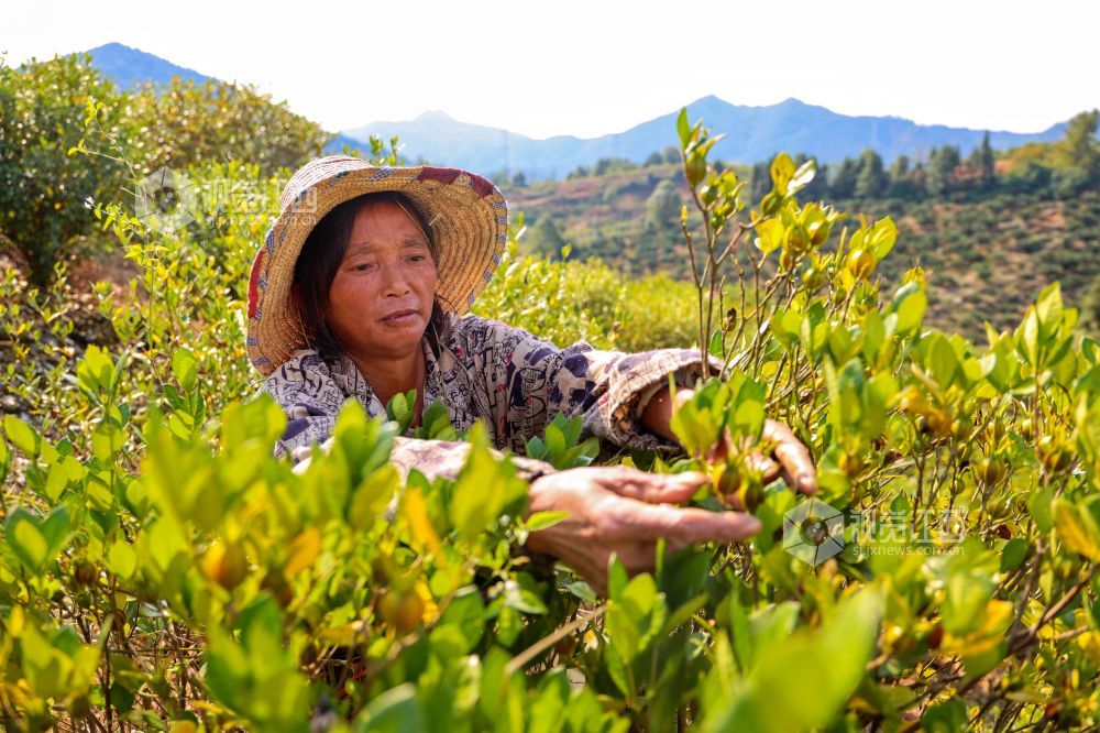 江西吉水:黄栀子丰收 村民采摘忙