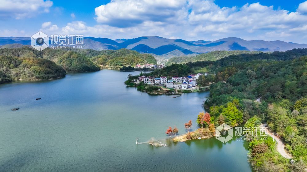 2023年11月6日,俯瞰江西省瑞昌市南义镇幸福水库,青山绿水,风景如画。