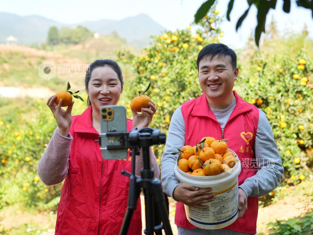 近日,江西省萍乡市芦溪县源南乡年轻党员干部通过网络直播带货的方式为果农销售新鲜橘子。