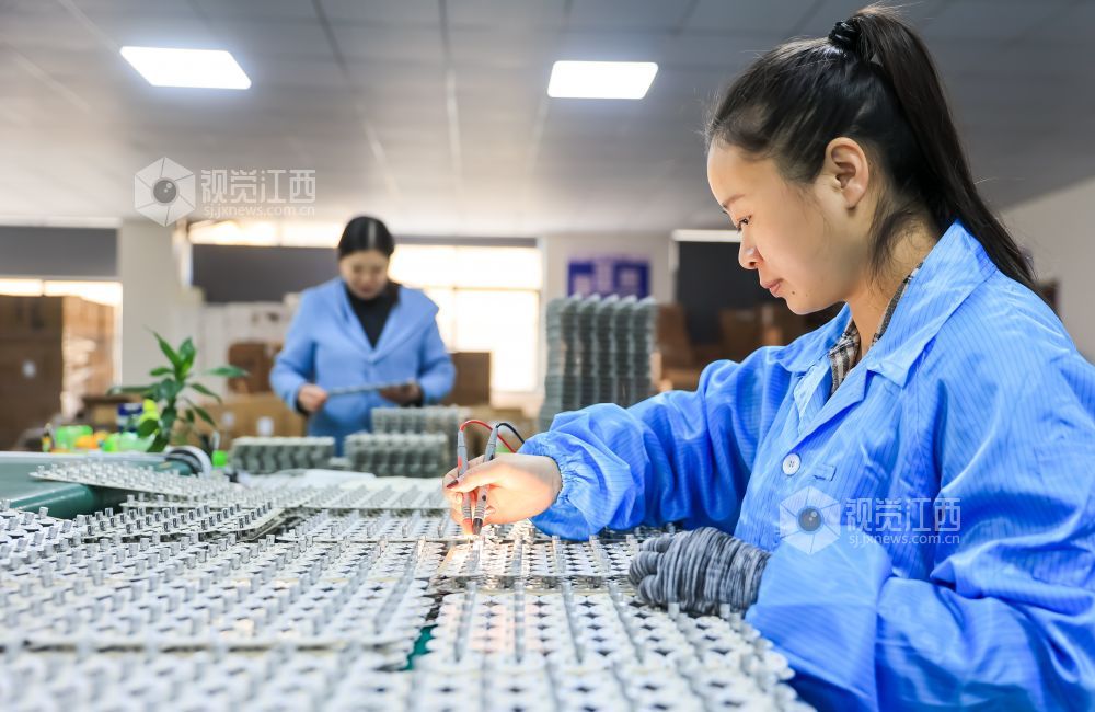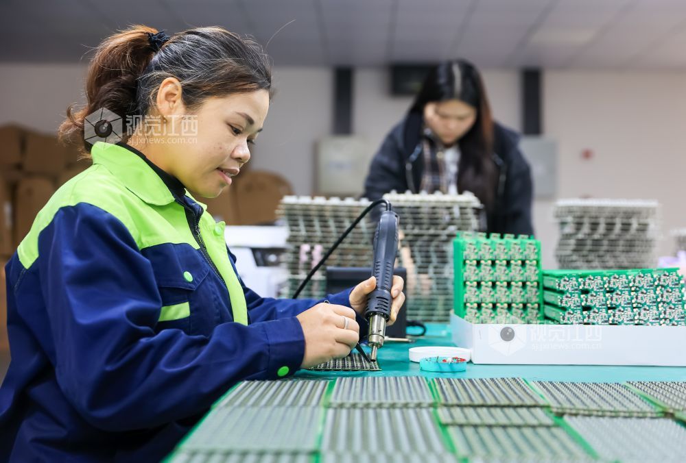 2023年11月14日,江西省瑞昌经开区智造小镇江西恒旺光电科技有限公司生产车间内,工人正在赶制订单。