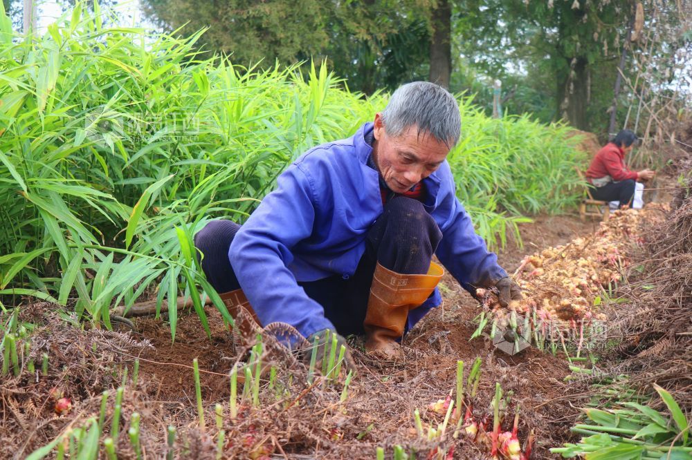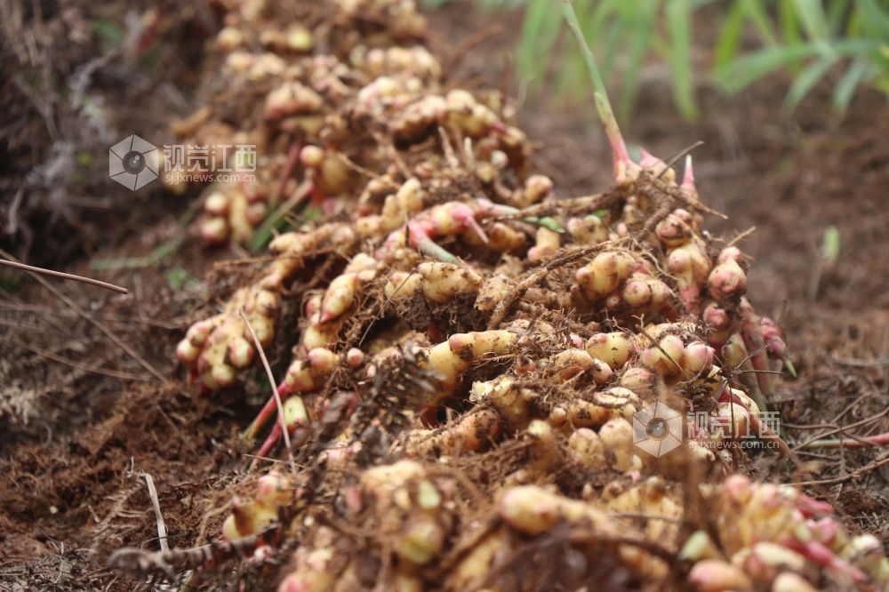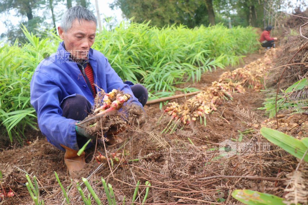 2023年11月16日,江西省余干县康山垦殖场里溪村种植的生姜喜获丰收,当地农民抢抓农时收获生姜。