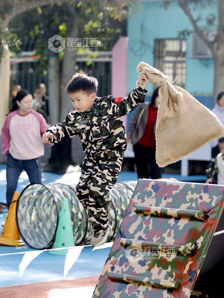 2023年11月17日,江西省吉安市峡江县幼儿园举行冬季军事运动会,通过“运军粮”“炸碉堡”“百发百中”等丰富多彩的项目比赛,让孩子们在运动中磨炼意志,激发爱国热情,共筑强军梦强国梦。