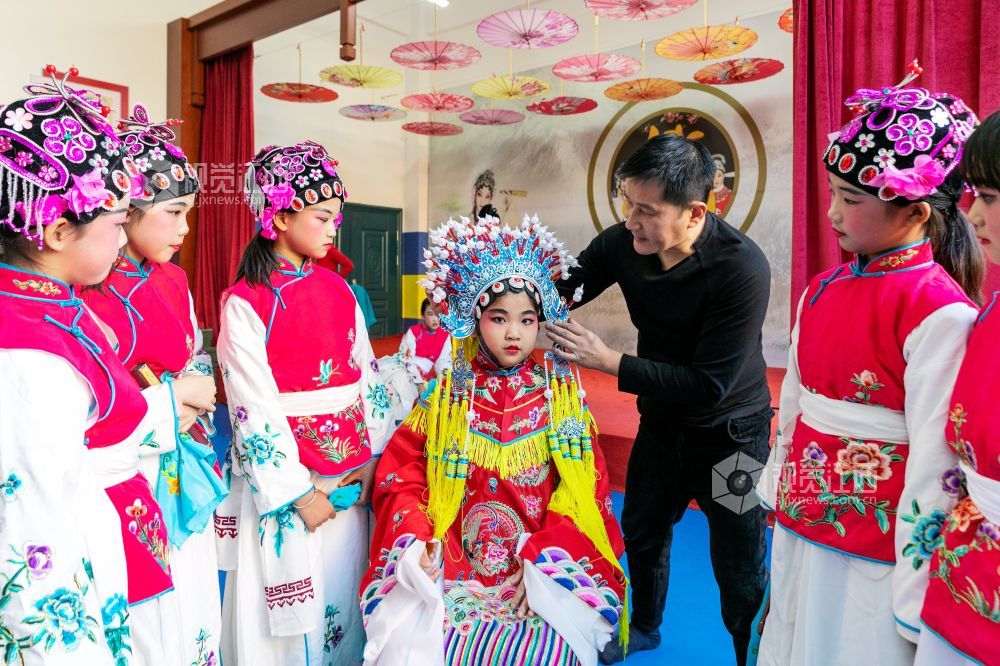 2023年11月21日,江西省吉安市吉水县城南学校京剧社团,小演员正在表演传统京剧。
