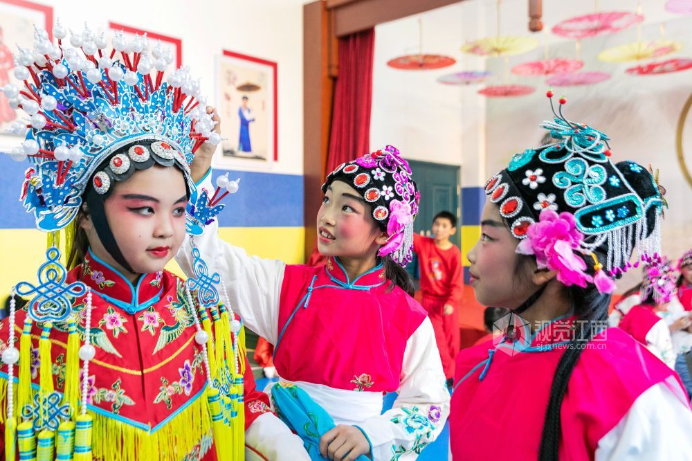 江西省吉安市吉水县城南学校积极落实“双减”政策,实行“1+N”课后服务模式,根据学生和家长需求建设京剧社团,聘请专业演员进校指导,让孩子们接受传统文化艺术教育,弘扬中华优秀传统文化,让非物质文化遗产得到传承,让国粹发扬光大。