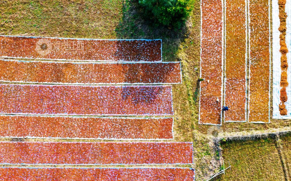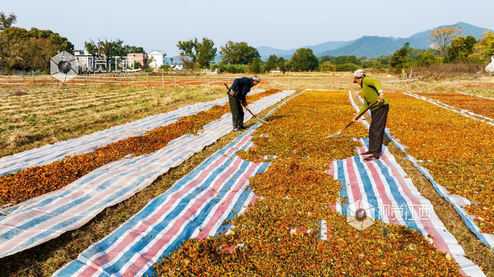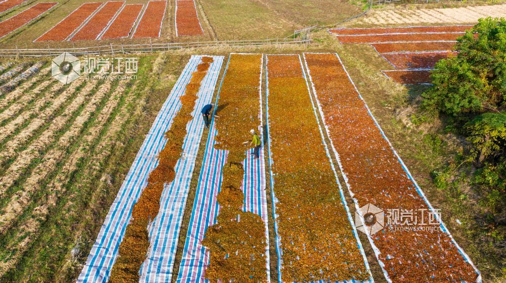 2023年11月24日,江西省吉安市吉水县文峰镇井头村,村民正在晾晒黄栀子。