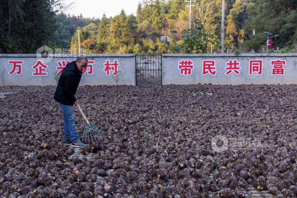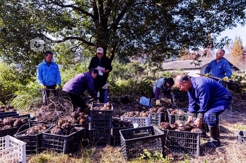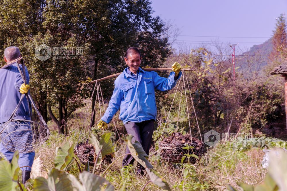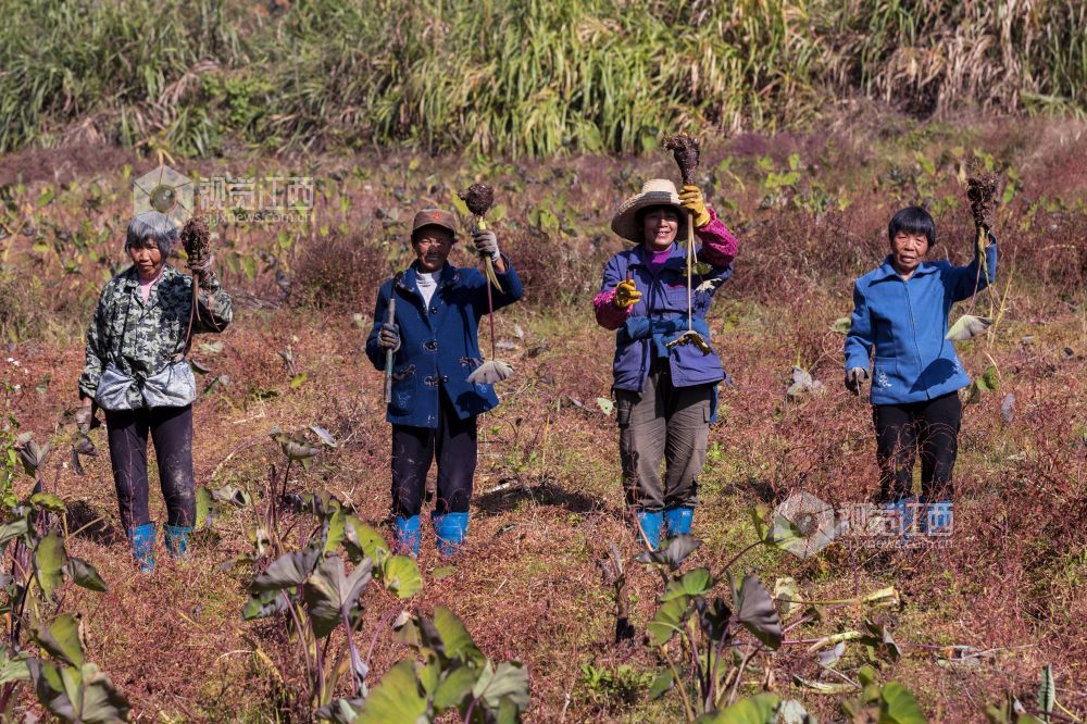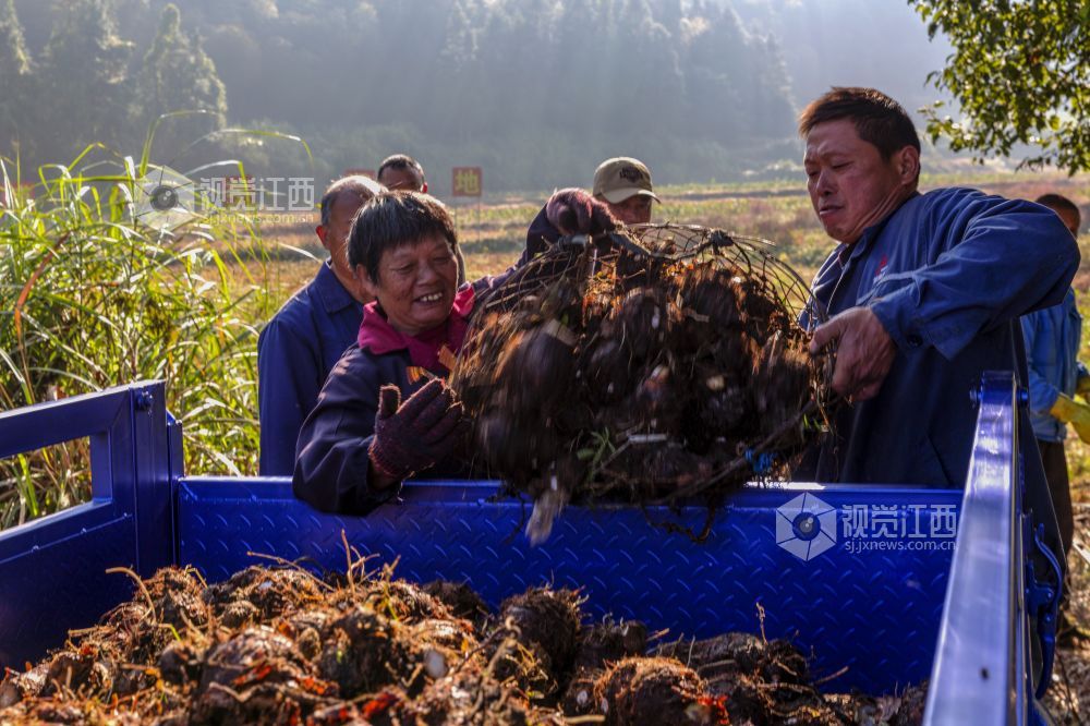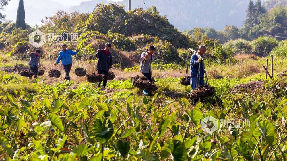 11月27日,在江西省新余市渝水区良山镇黄虎村的香芋基地,村民们正忙着采挖、分拣、挑运、装车香芋,一派丰收喜悦的景象。