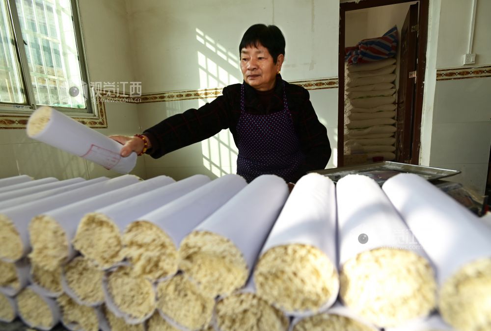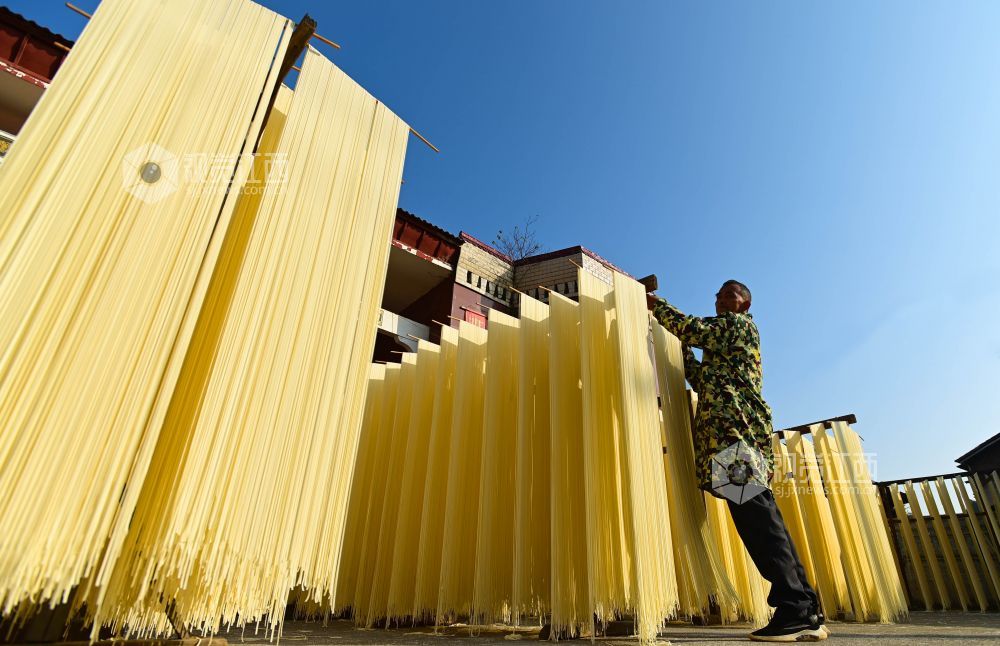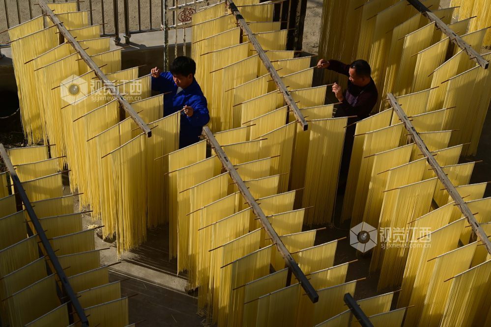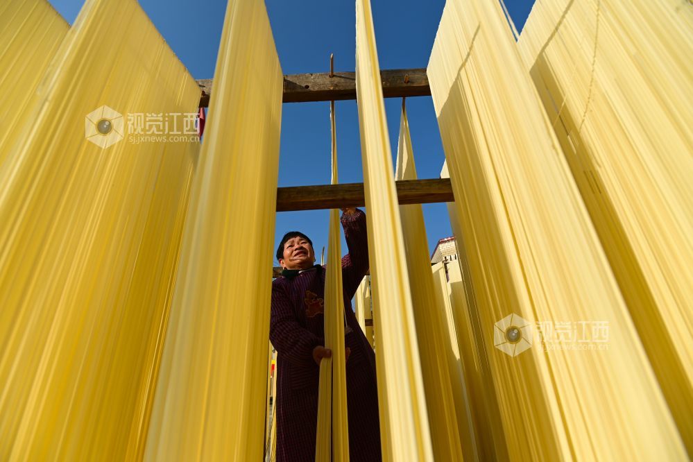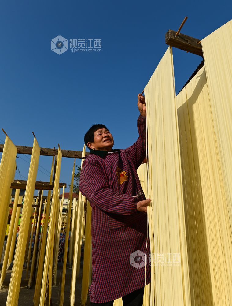 进入初冬时节,江西省宜春市万载县黄茅镇永安村传统手工面制作进入繁忙时节,当地村民趁着天气晴好,忙着制面、晾晒,保障市场需求。