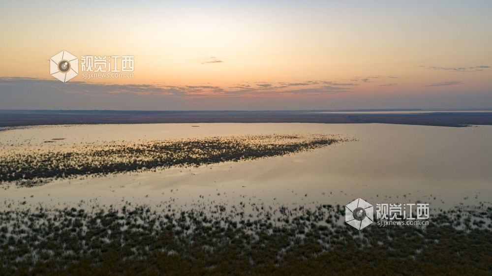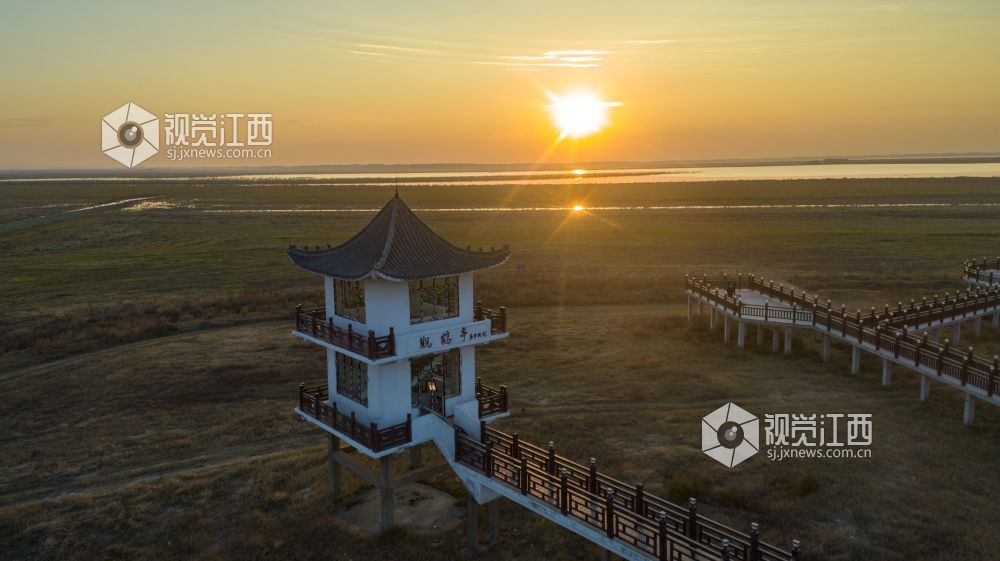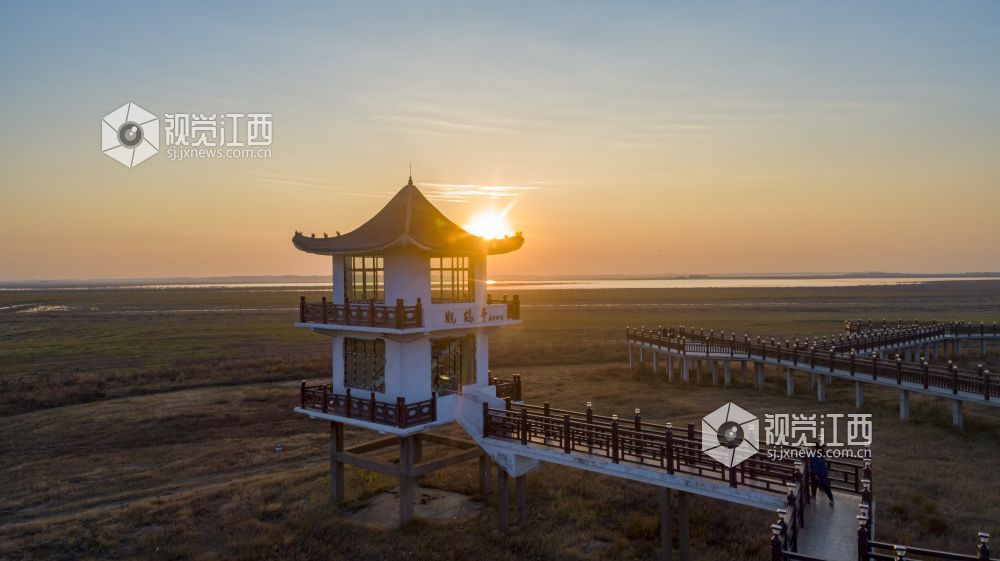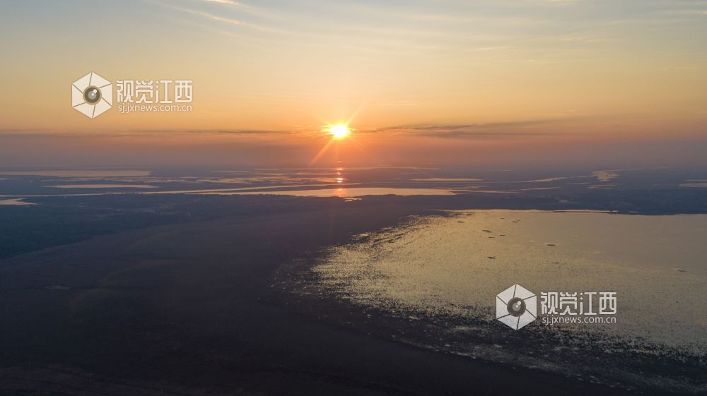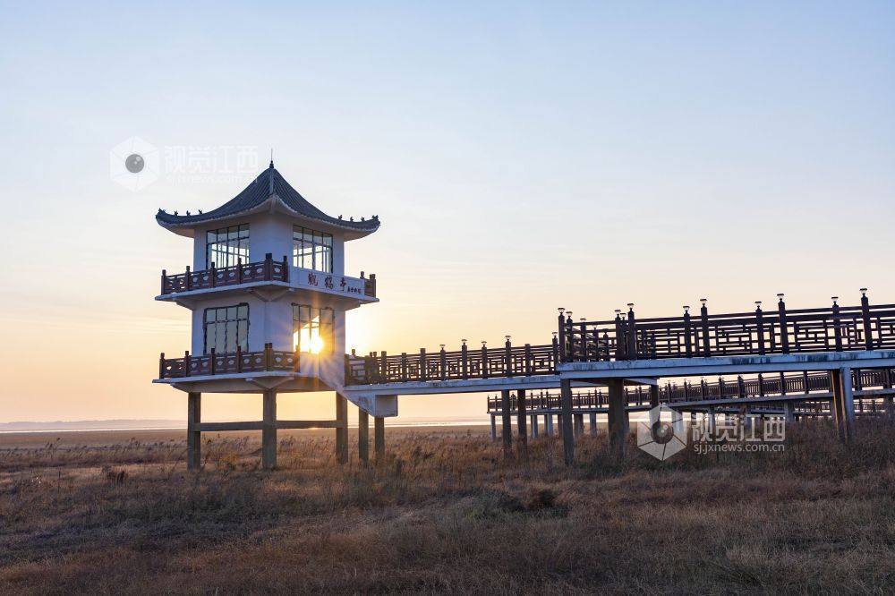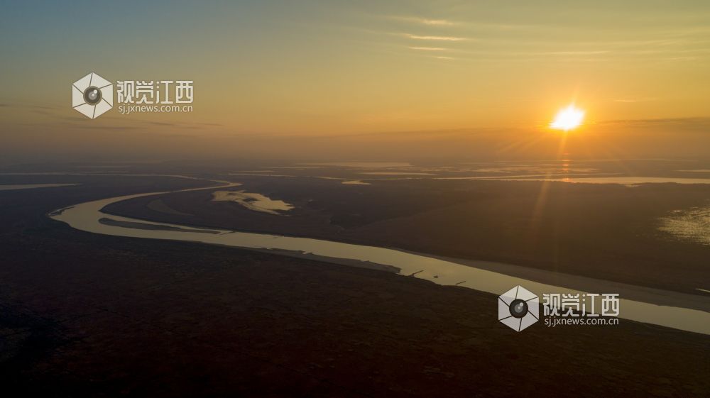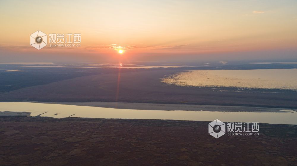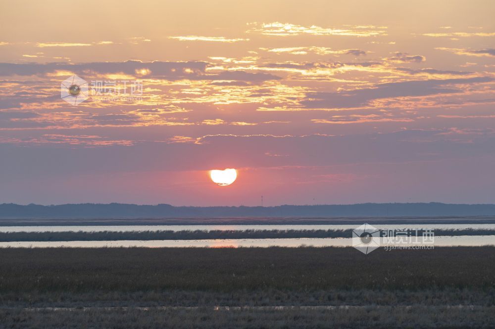 12月2日,江西省庐山市沙湖山鄱阳湖湿地生态保护区,早晨日出时霞光万丈,湿地草洲、湖泊河道一片宁静,这里已经是世界最大的候鸟越冬栖息地。