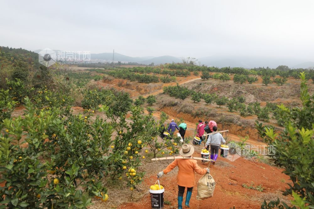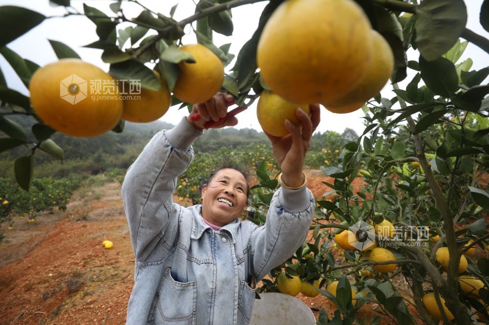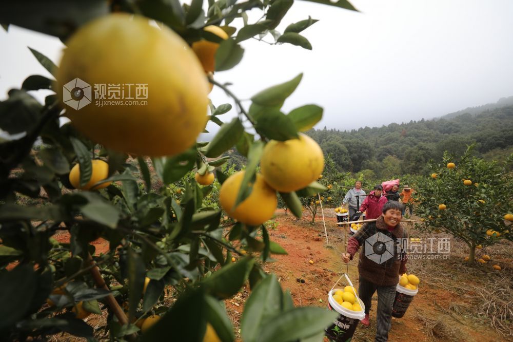 12月13日,走进江西省莲花县升坊镇江口村葡萄柚基地,绿色的果树上挂满了金黄的葡萄柚,一派丰收的景象。村民穿梭期间,抓紧采摘,供应市场。据悉,该村500多亩葡萄柚喜获丰收,每亩产量预估不少于3000斤。