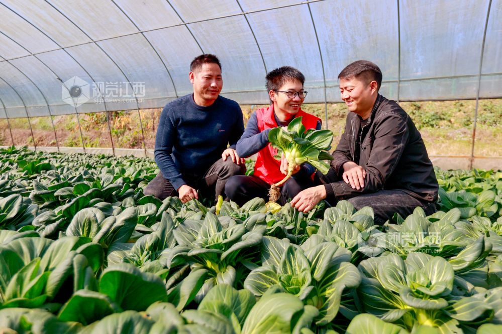 12月15日,在江西省峡江县戈坪乡蔬菜种植基地,科技特派员(中)在向农户讲解大棚蔬菜种植技术。据悉,峡江县组织由科技特派员和“土专家”“田秀才”等乡土人才组成的科技服务队,通过集中授课、田间课堂、现场指导等方式,向农民传授实用技术,解决技术难题,助力农业增效、农民增收。