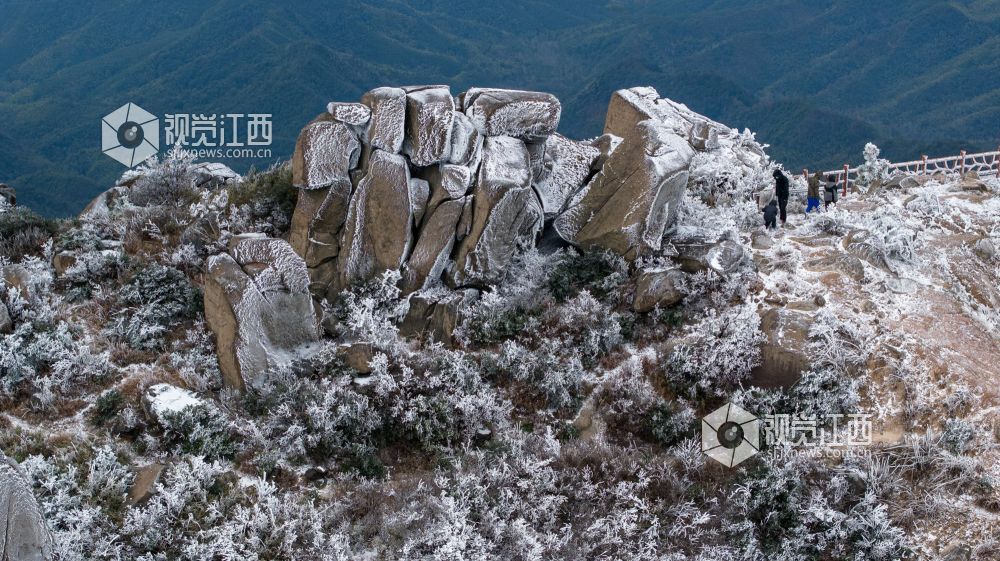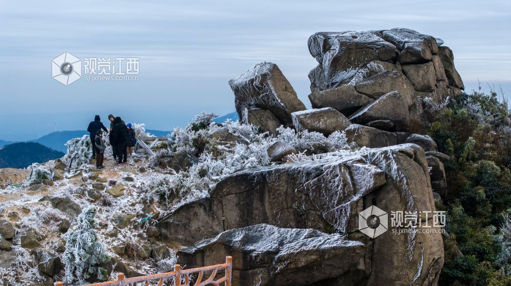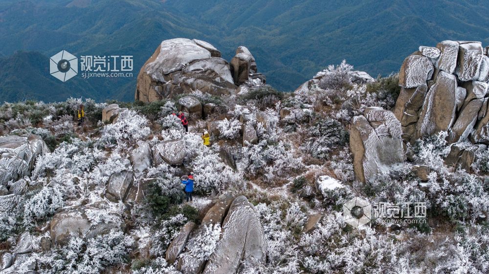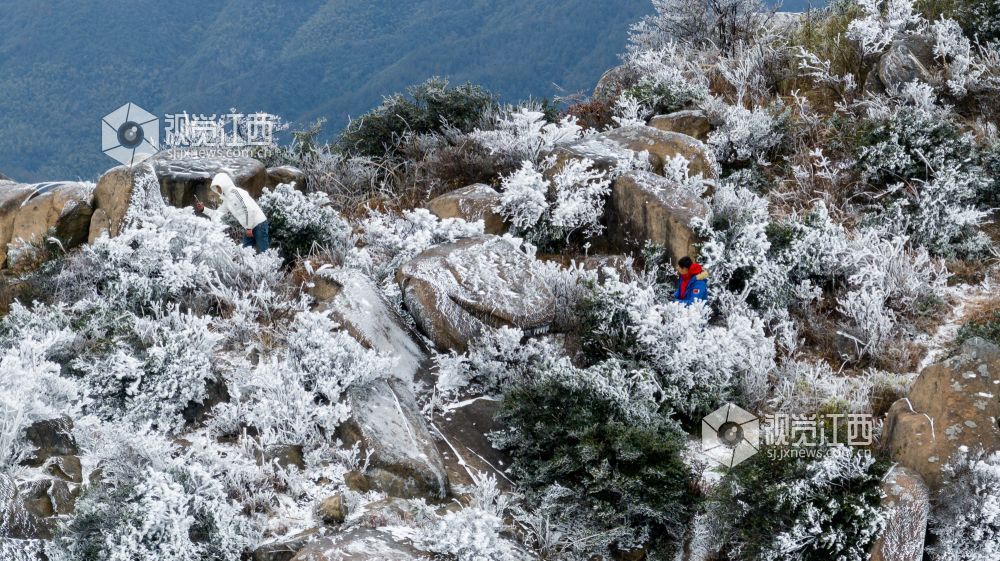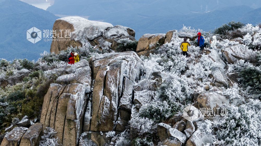 连日来,江西省吉安市气温持续走低,吉安市新干县七琴镇燥石山的雾凇引来众多外地游客登山观赏,一饱眼福。