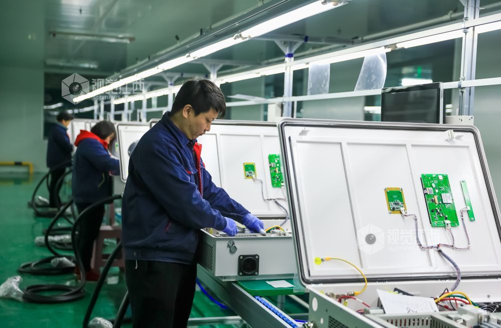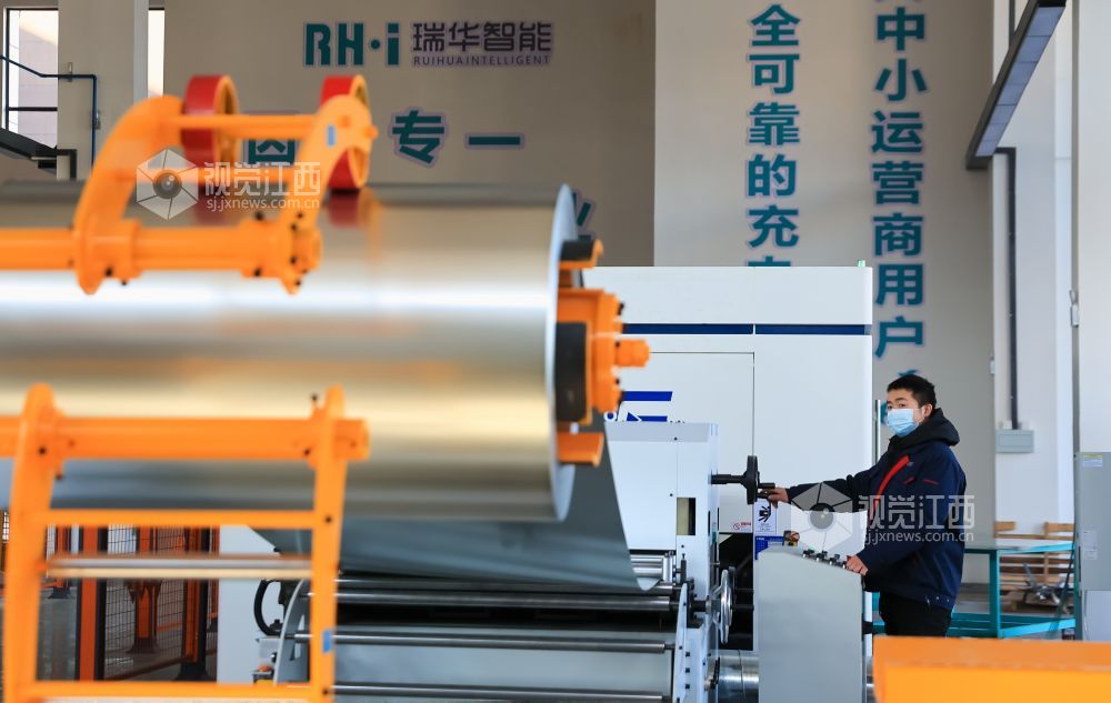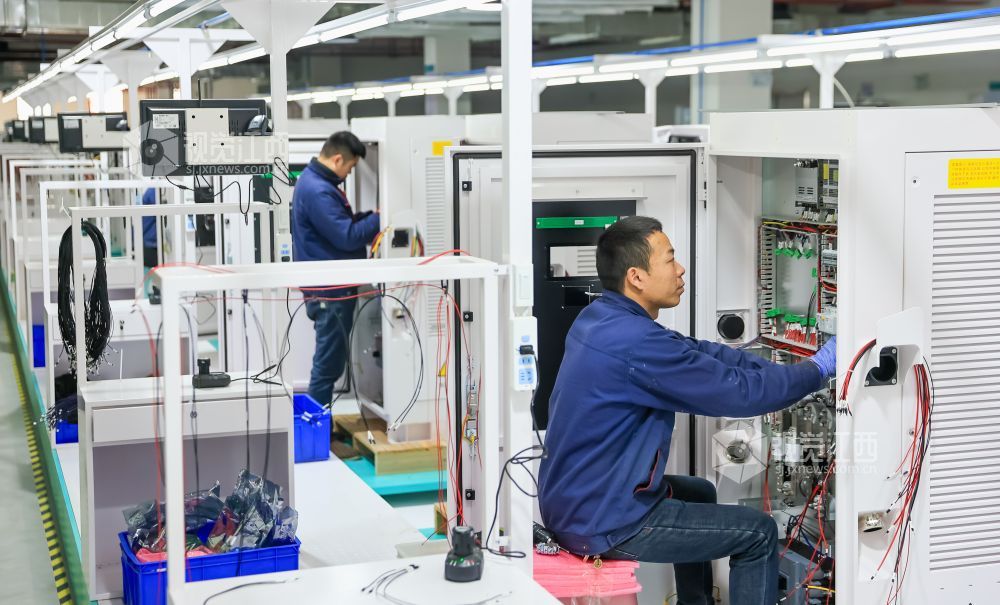 2023年12月25日,江西省瑞昌经开区智造小镇江西瑞华智能科技有限公司生产车间内,工人正在赶制新能源汽车智能无线充电桩。