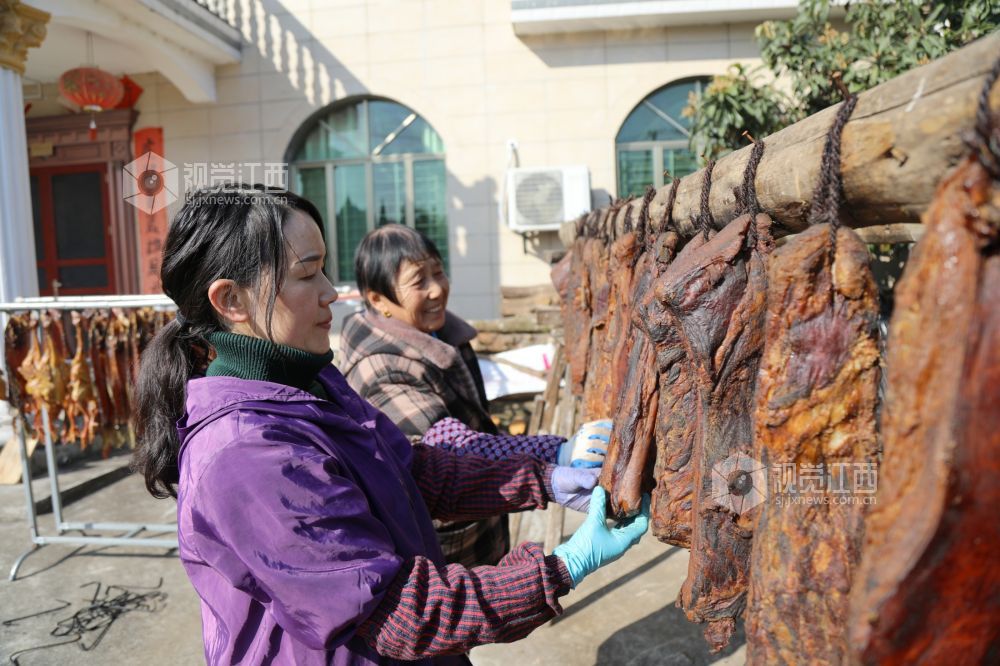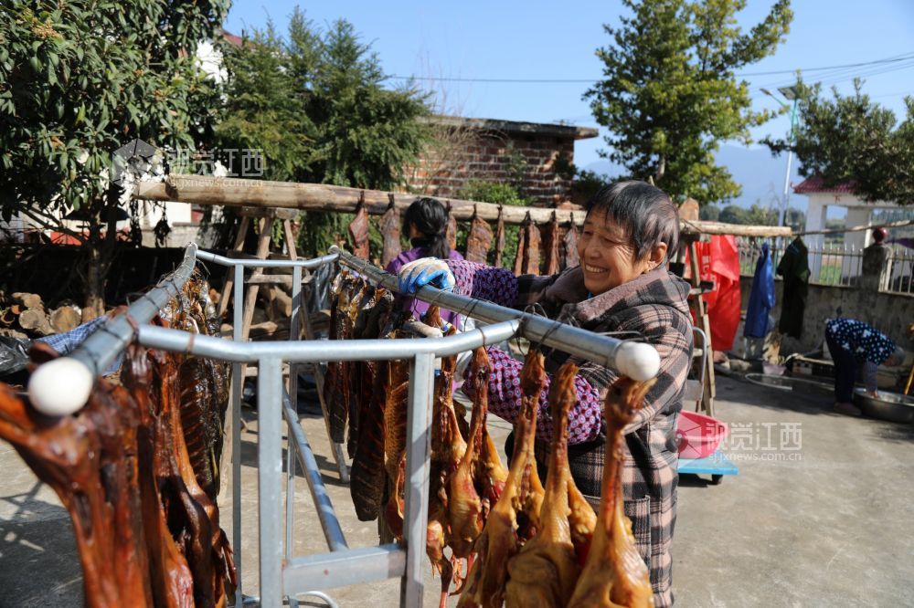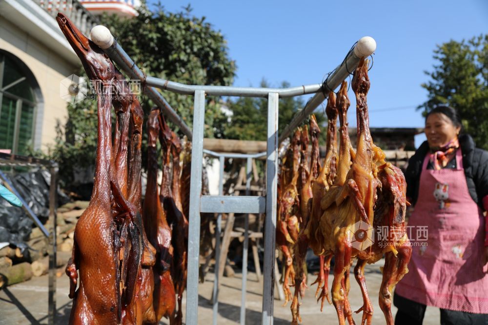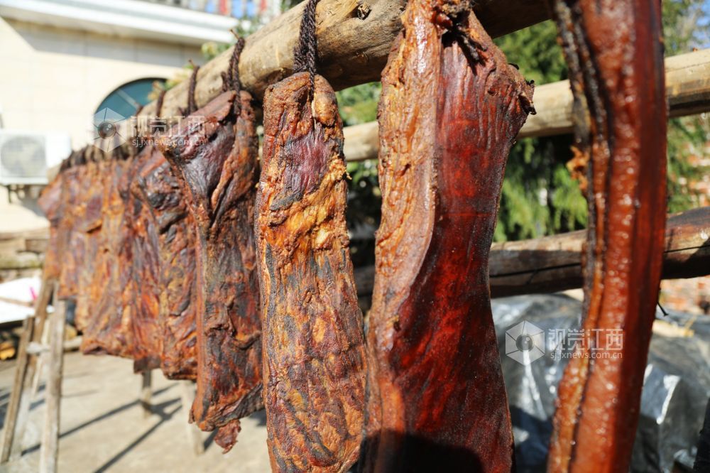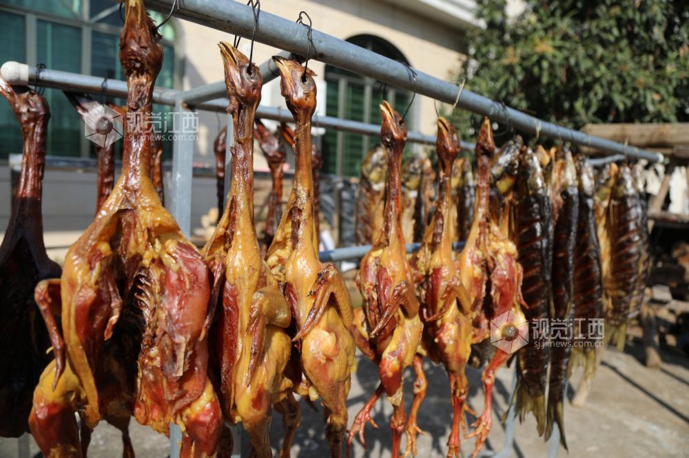 冬至前后,莲花县村民抓住晴好天气,纷纷赶制腊肉、腊鱼、腊鸡等传统腊味食物,并进行晾晒,飘香的腊味也成为一道靓丽的风景。