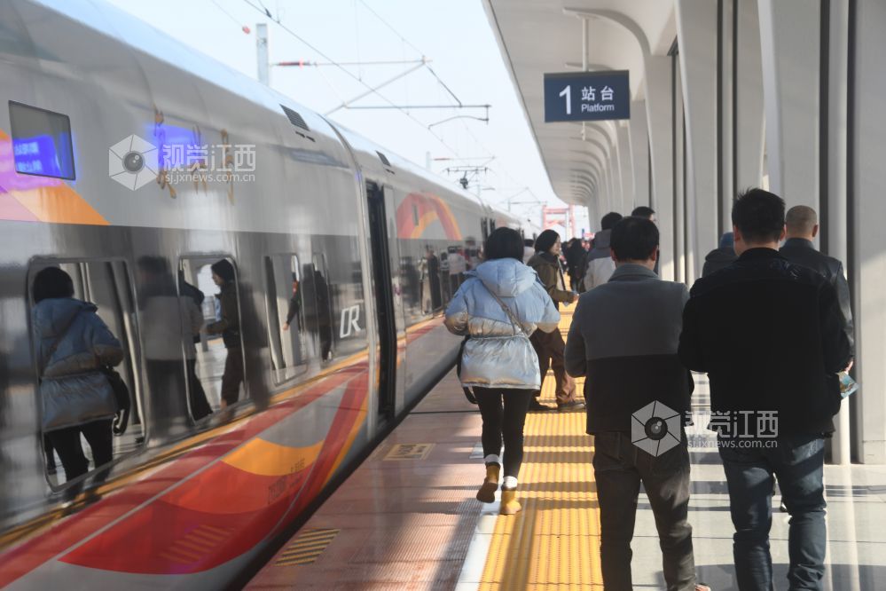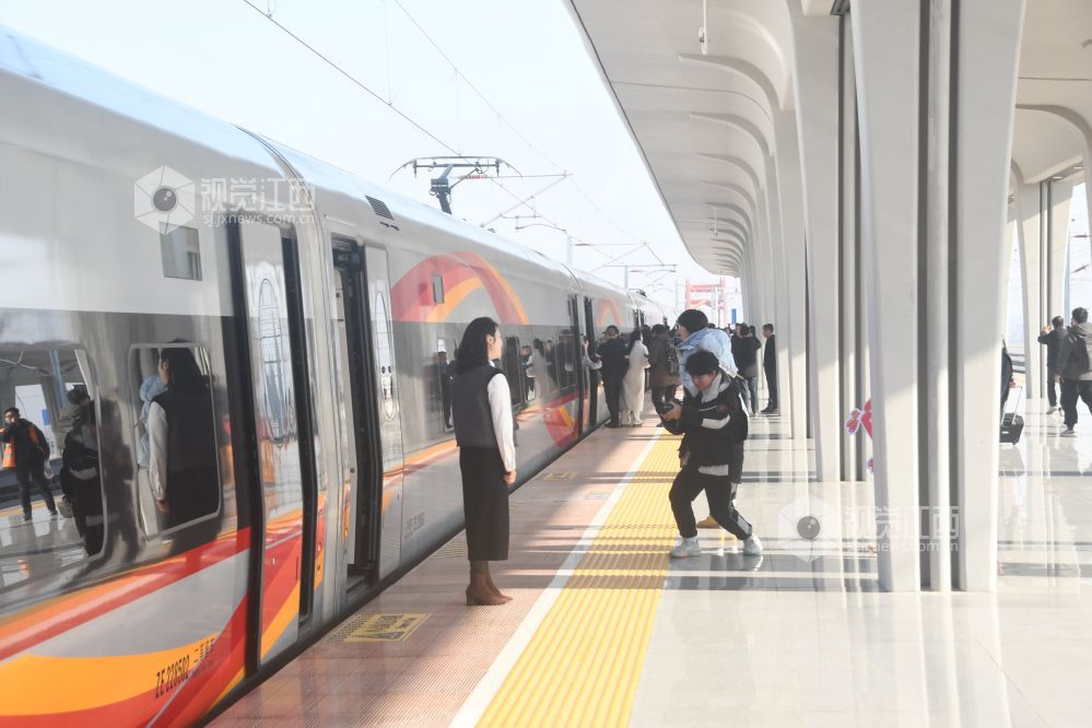 鄱阳站首次投入使用,迎来了鄱阳湖东岸大鄱阳的高铁时代。从鄱阳站上车的乘客纷纷表示本次新高铁的运营不仅方便了生活,更拉动了城市之间的经济互通。为庆祝途经鄱阳的第一条高铁首次运营,游客纷纷拿出相机、手机,记录下这意义非凡的时刻。