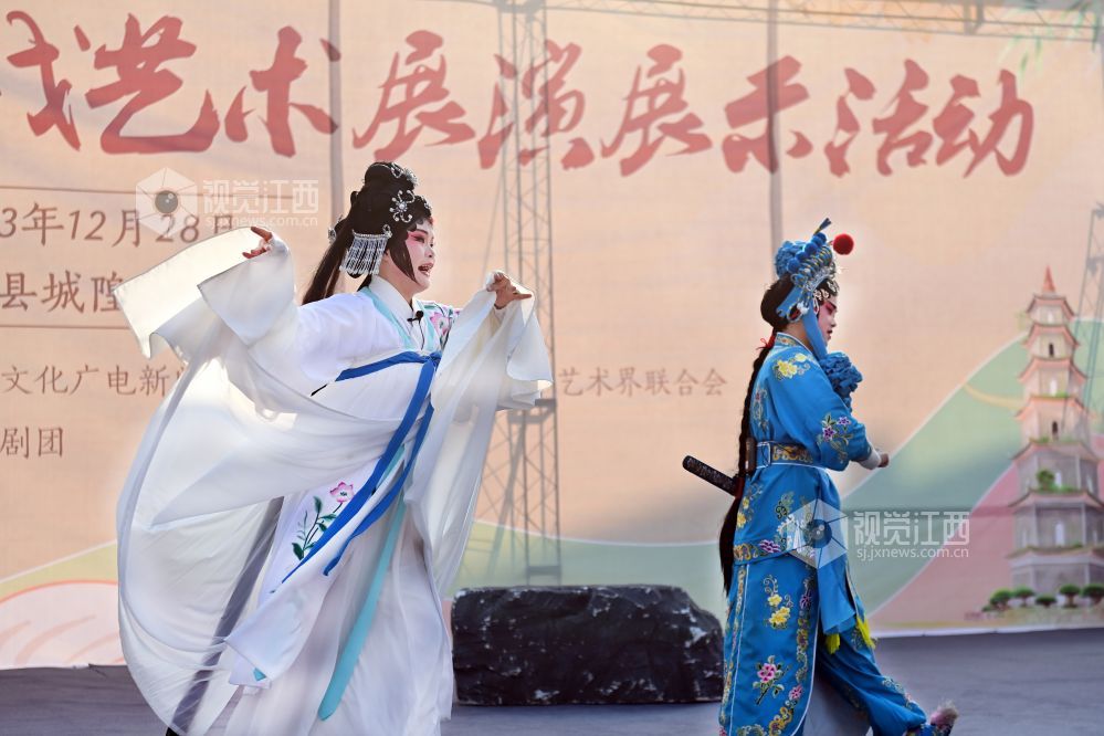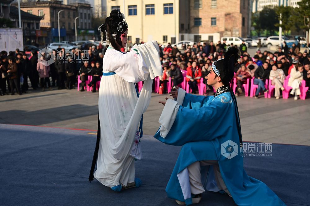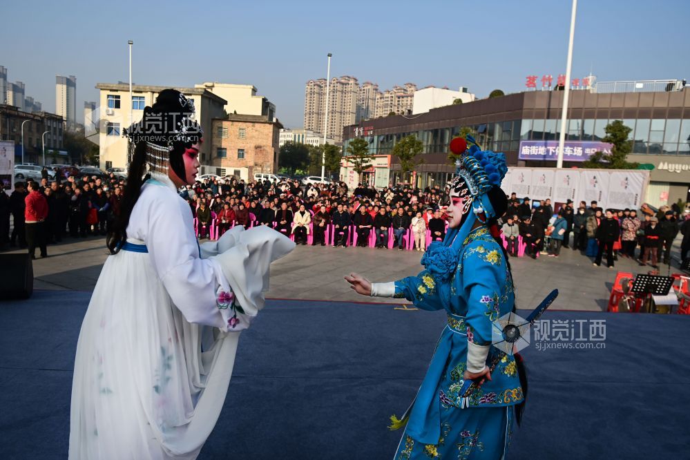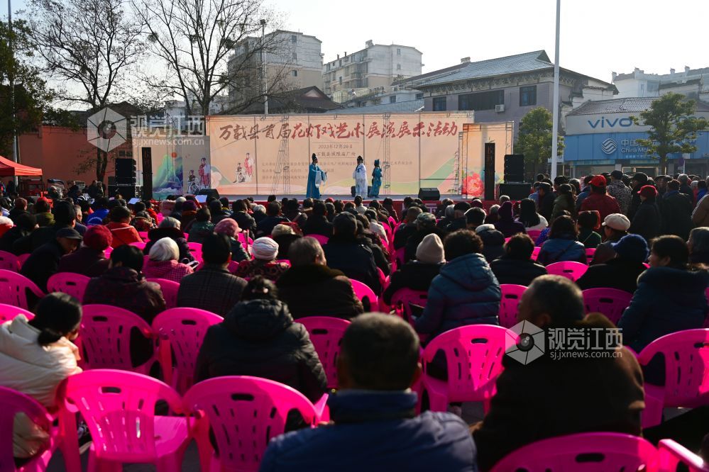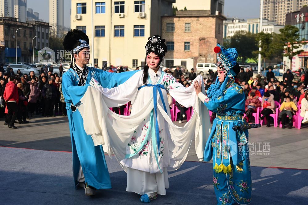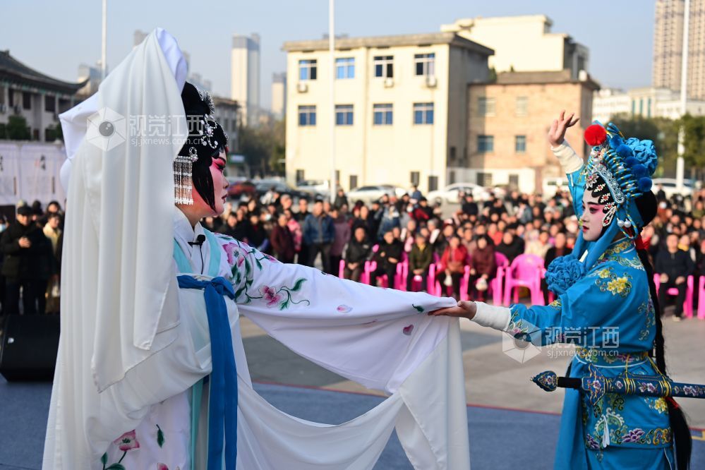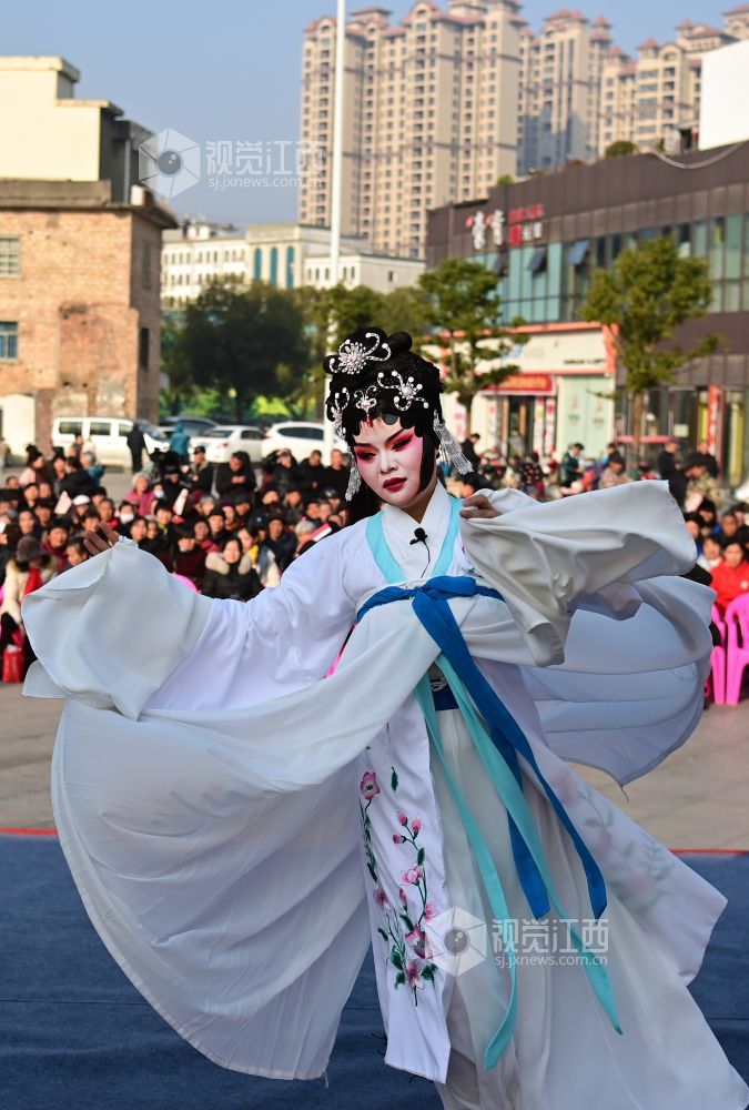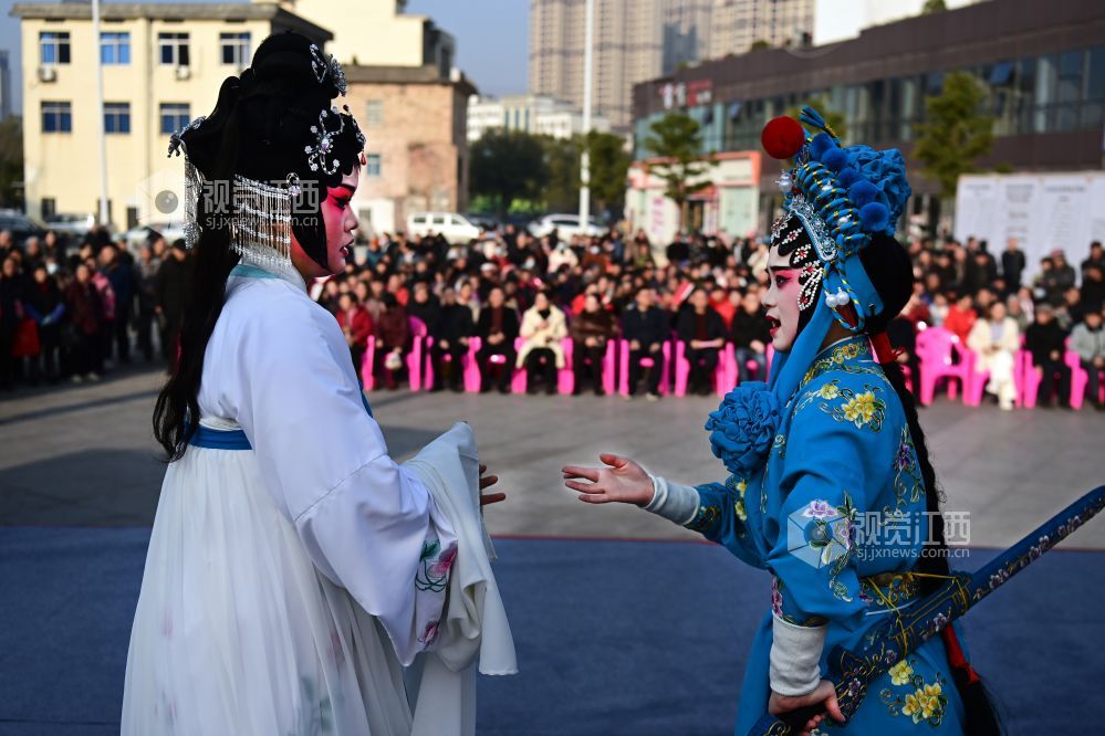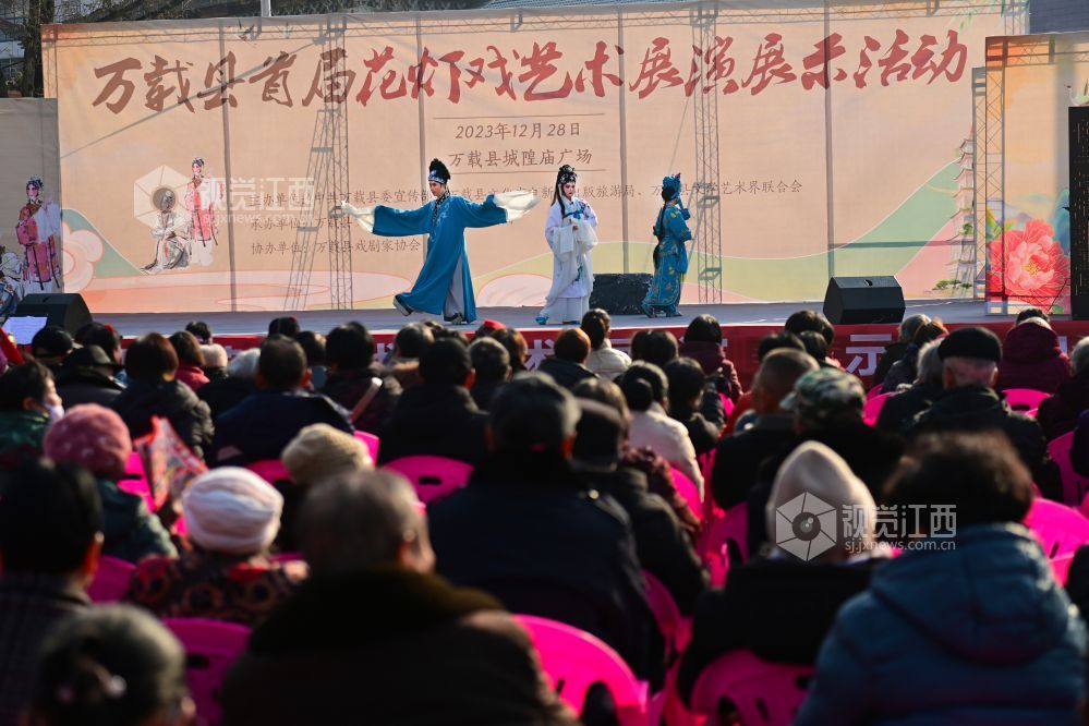 江西省宜春市万载县首届花灯戏艺术展演展示在康乐街道务前社区新时代文明实践广场火热上演,唱大戏、迎新年,为社区居民奉上精彩的文化大餐。