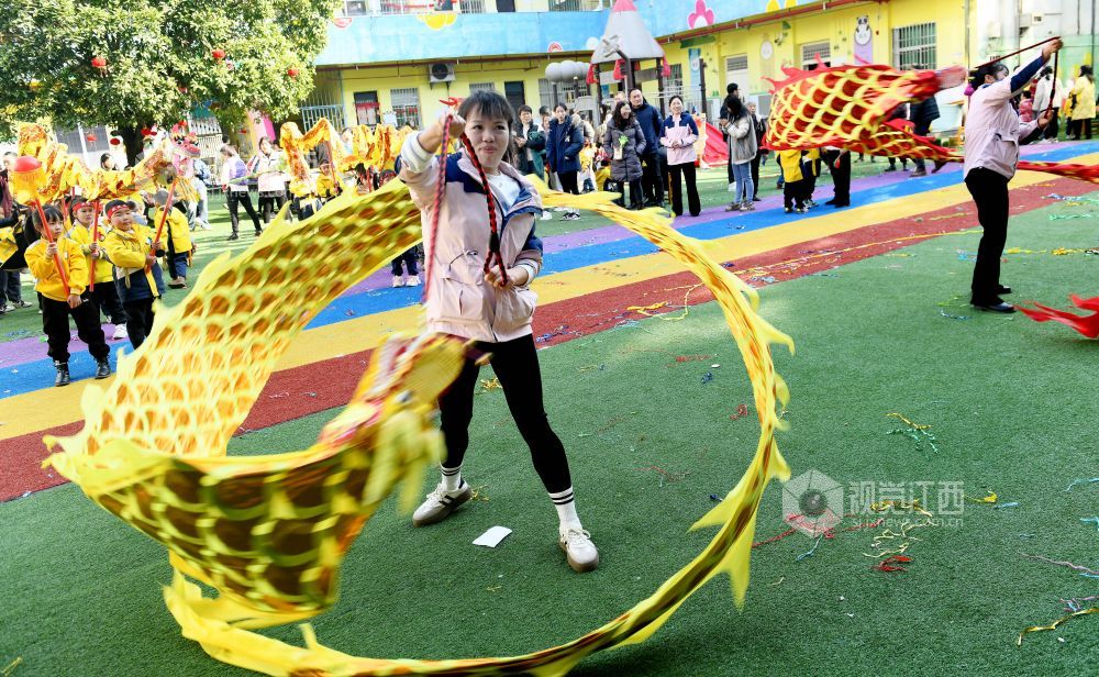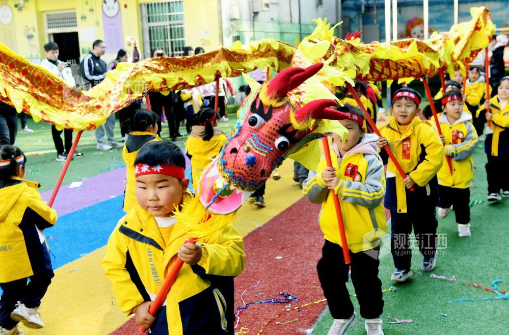 当天,江西省德兴市银城幼儿园举办了一次“学传统、展民俗、迎新年”文化活动,小朋友在老师的指导下,先后展示了舞龙、打鼓、扭秧歌等我国传统迎新节目,吸引众多家长前来观看,为即将到来的2024龙年增添了几分喜庆氛围。