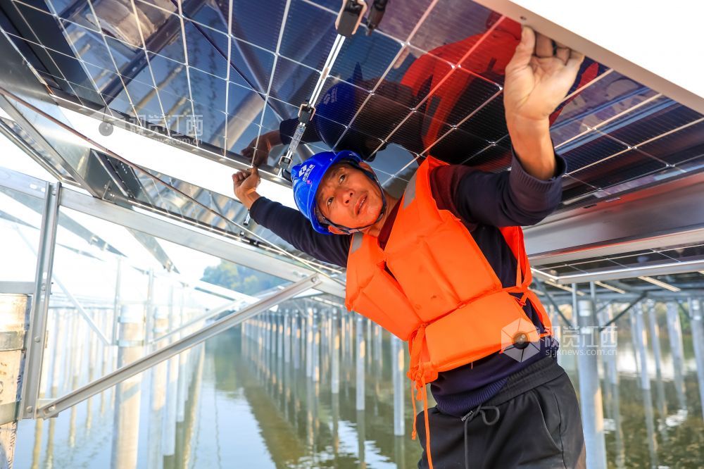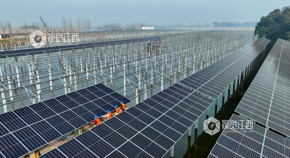 近年来,九江市柴桑区因地制宜实施“渔光互补”光伏电站项目,形成了“水上能发电、水下能养鱼”的生态美景。