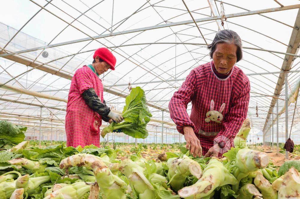 小寒将至,江西省吉安市吉水县各地菜农一片忙碌,村民采收各类新鲜蔬菜供应市场,确保冬季市场供应。