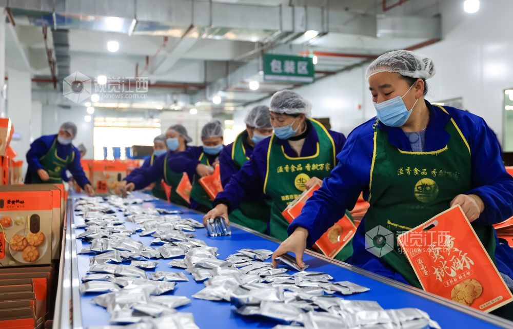 春节临近,伴随着传统糕点食品消费旺季的到来,瑞昌市众多食品生产企业一派繁忙,工人们在生产车间内赶制食品订单,以满足春节市场需求。