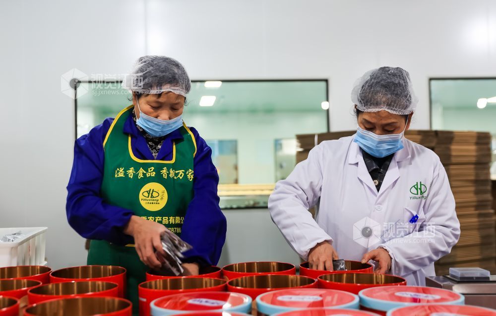 2024年1月8日,江西省瑞昌经开区江一食品生产车间内,工人在生产线上忙碌生产。
