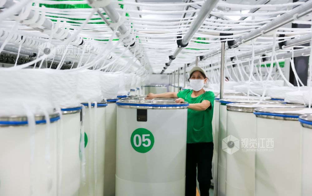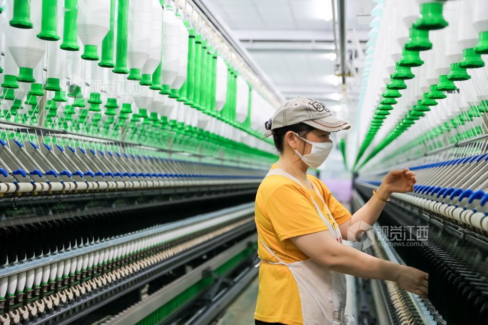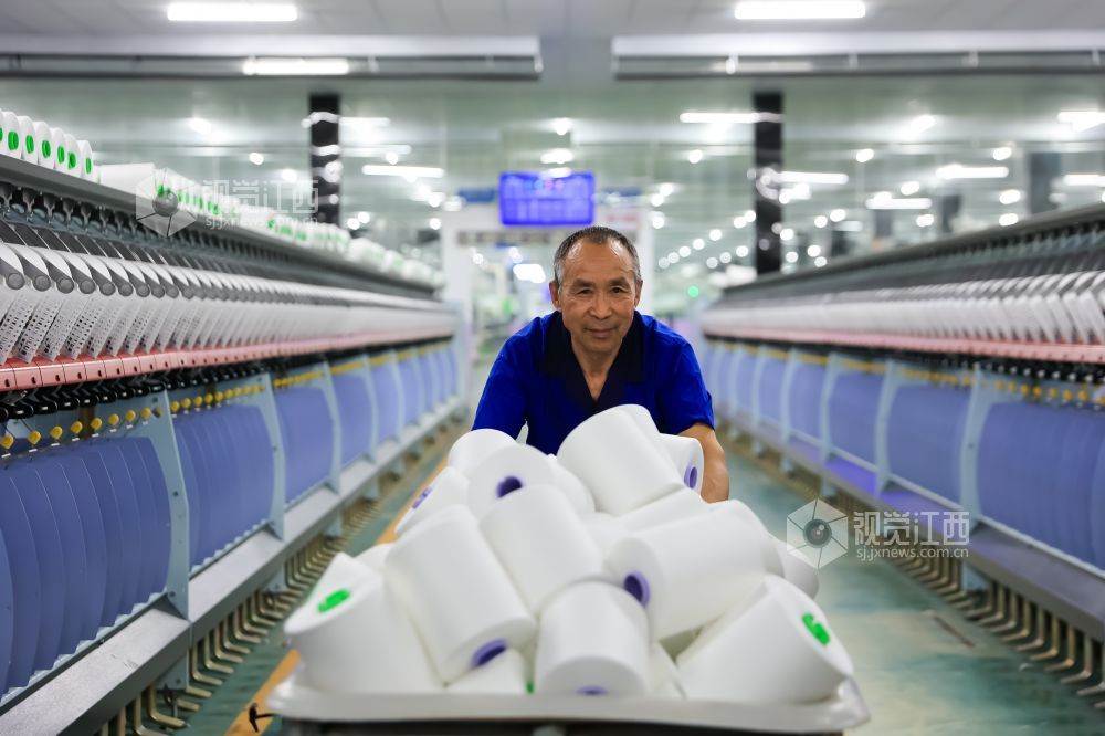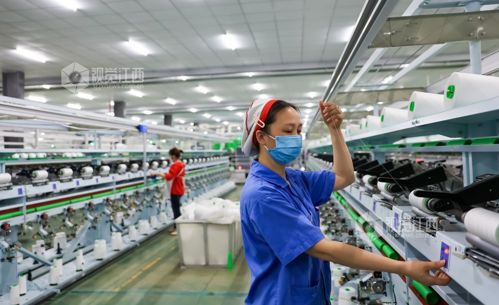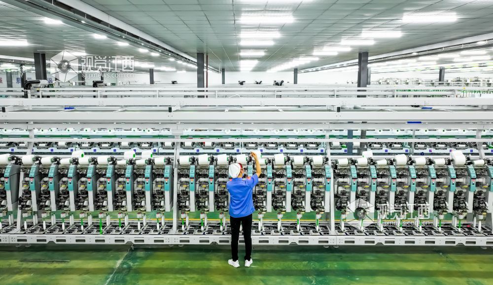 2024年1月11日,江西省瑞昌市华瑞(中国)缝纫线有限公司数字工厂内一派繁忙景象,工人在智能生产线上赶制国内外订单。