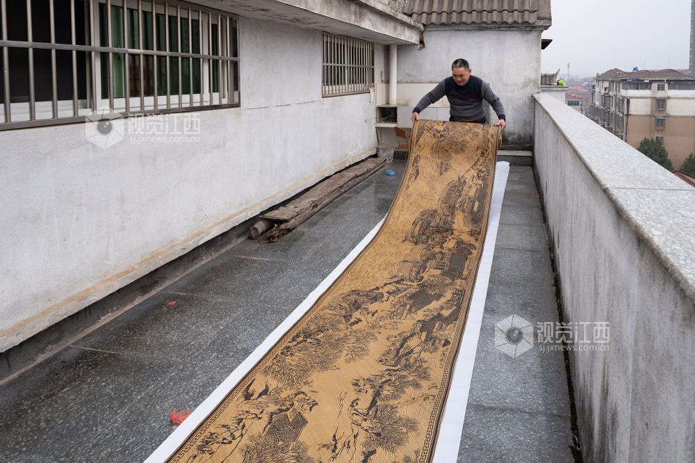 黄佑明,现年68岁,系金溪县左坊镇后车村人,受父亲影响,12岁时便边读书边随父亲学做篾。1975年高中毕业后继续跟父亲学手艺。后来结婚成了家,也一直以做篾为生。2017年开始搞竹编技艺创新,利用竹编技艺编织各类题材的书画名作,正式走上竹编艺术创作道路,作品有《毛泽东诗词·长征》《八骏图》《八仙过海》《最后的晚餐》《毛泽东肖像》《习仲勋在保卫延安动员大会上》《清明上河图》《千里江山图》等。这些作品里最有难度和代表性的是《清明上河图》《千里江山图》,其中《清明上河图》长16米、宽0.85米,《千里江山图》长17.2米、宽0.80米,两者创作花时均超过两年半,均用去一万八千多根篾丝。