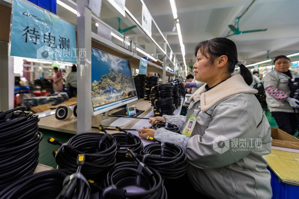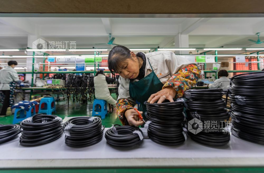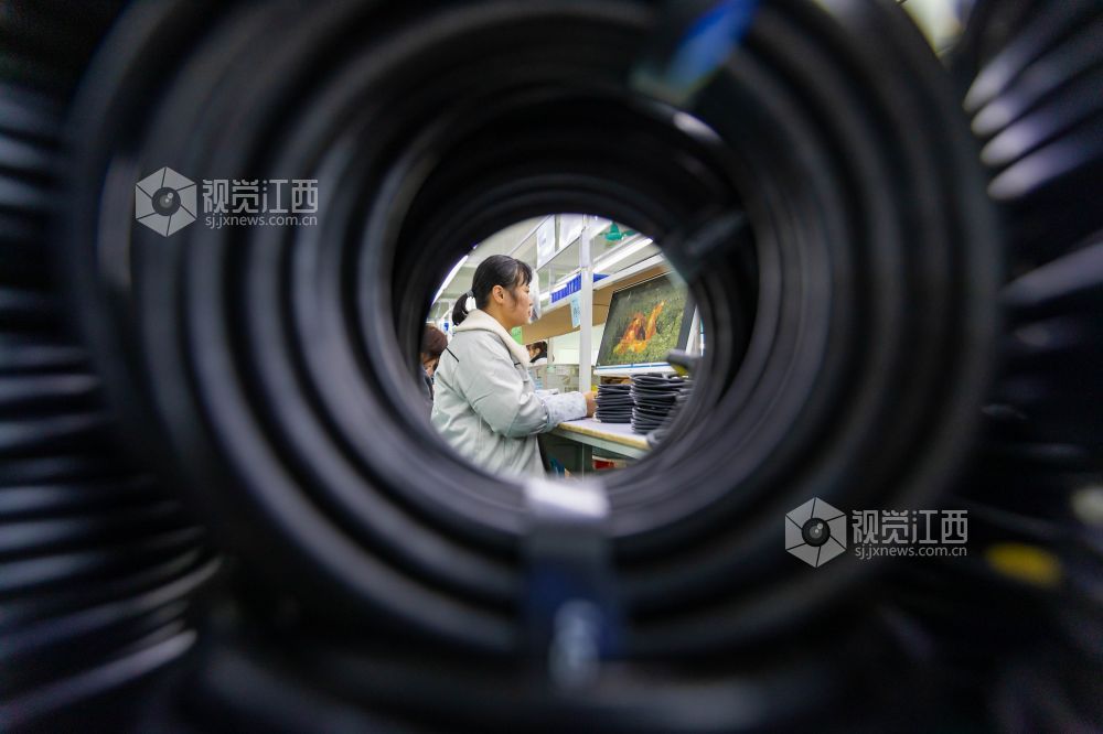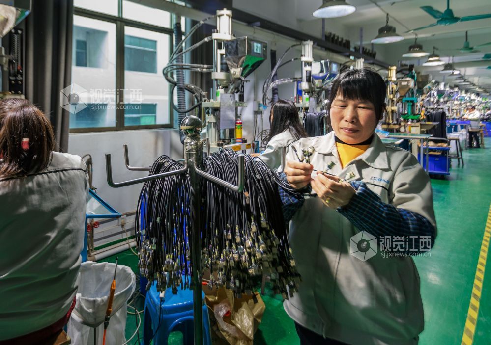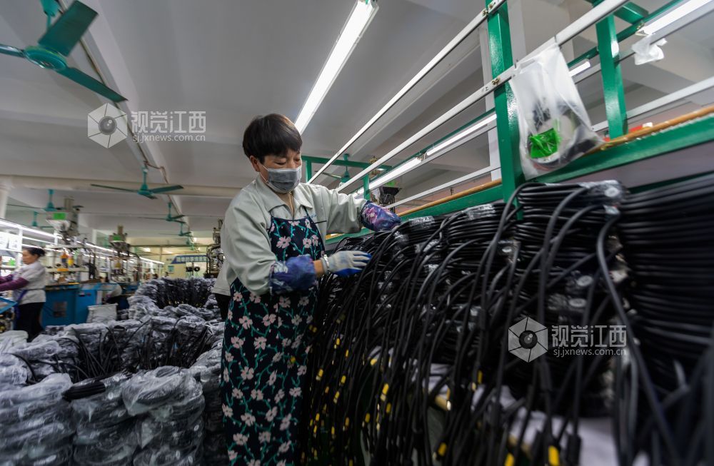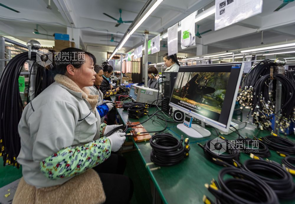 1月13日,在江西省永新县工业园区易巴克电子科技有限公司,员工忙碌在生产线上。新年伊始,永新县各企业纷纷开足马力忙生产,赶订单,力争实现首季“开门红”。