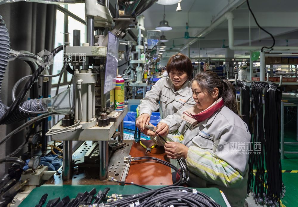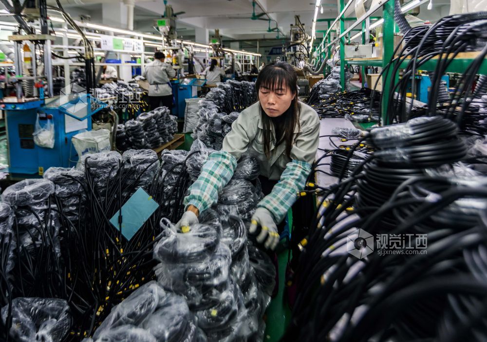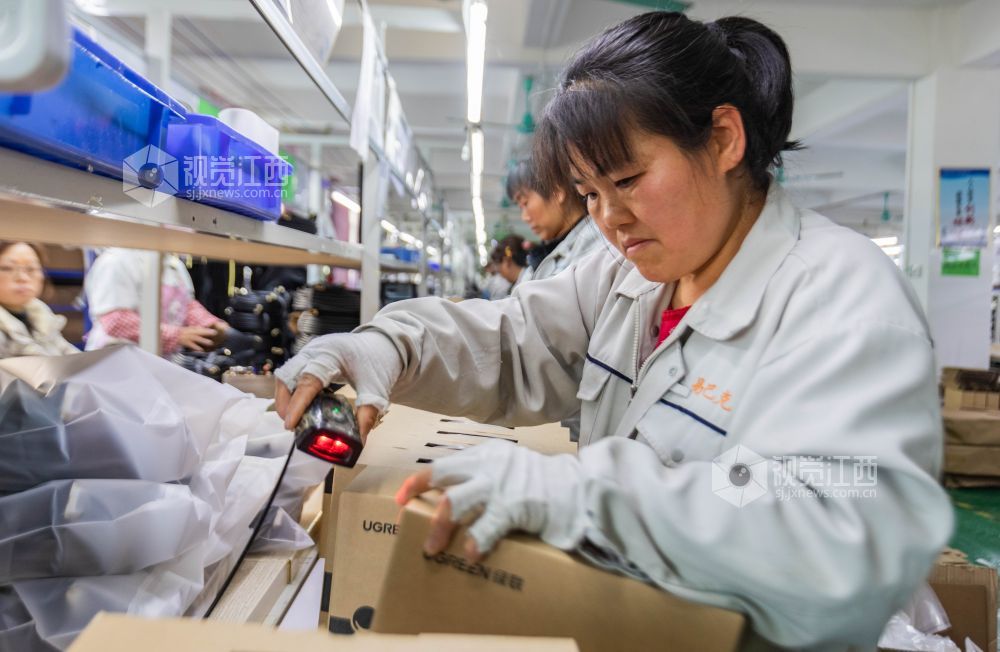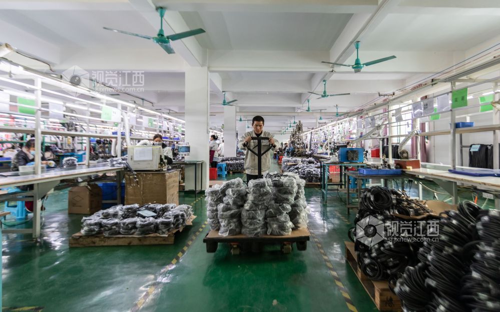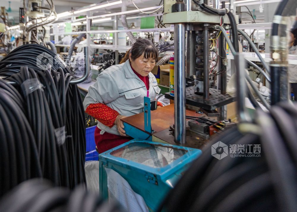 1月13日,在江西省永新县工业园区易巴克电子科技有限公司,员工忙碌在生产线上。新年伊始,永新县各企业纷纷开足马力忙生产,赶订单,力争实现首季“开门红”。