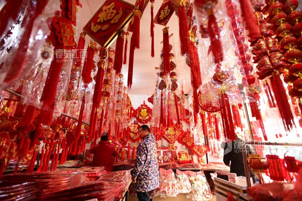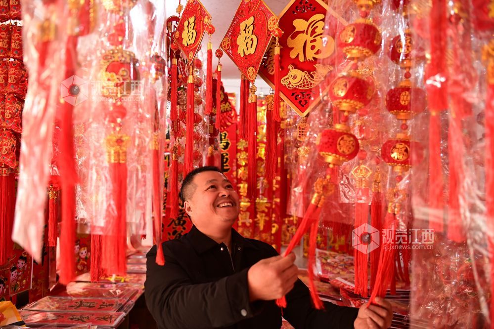 春节临近,江西省宜春市万载县大街小巷年味渐浓,人们在喜庆的氛围中迎接新春佳节。