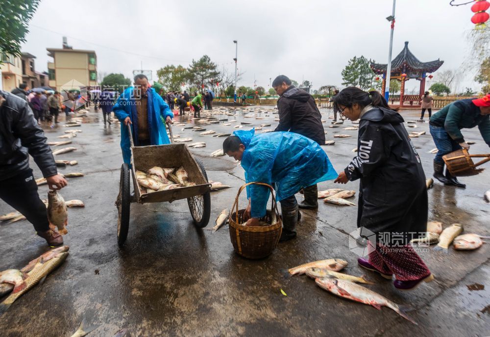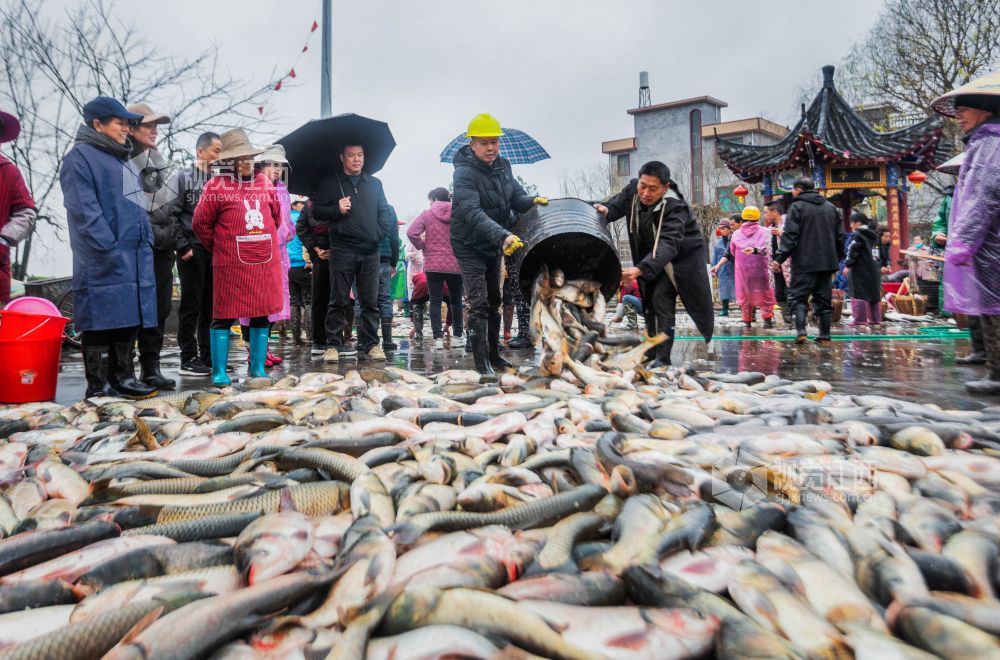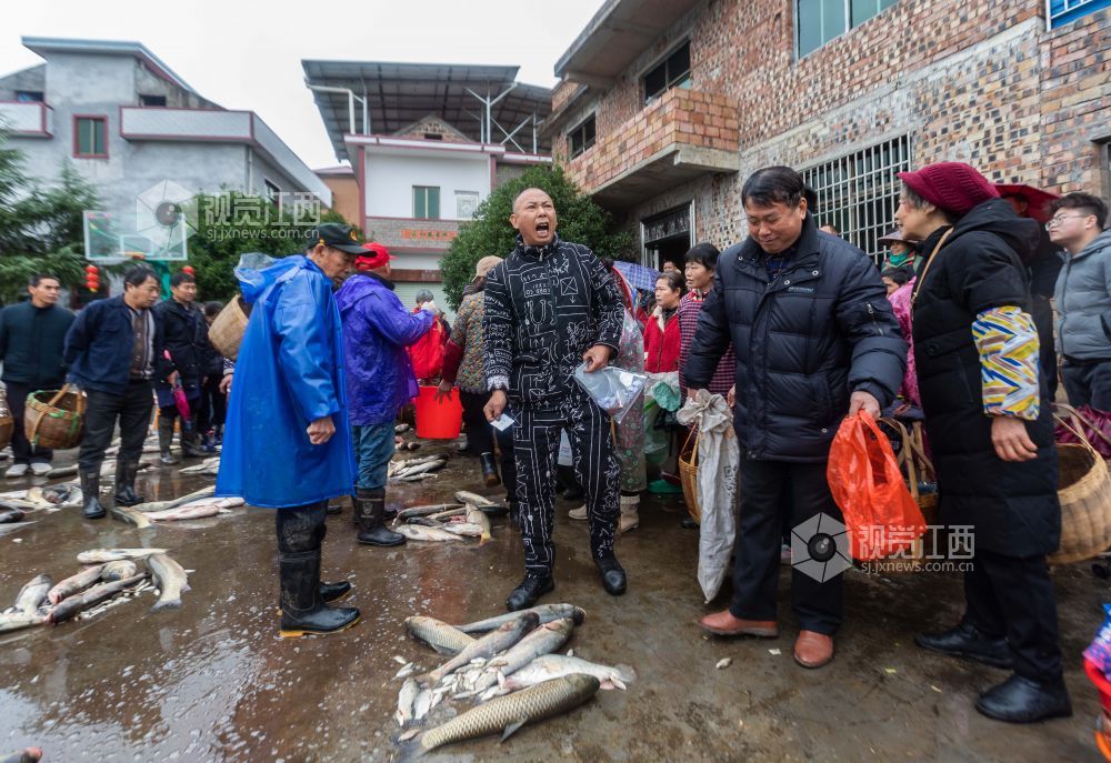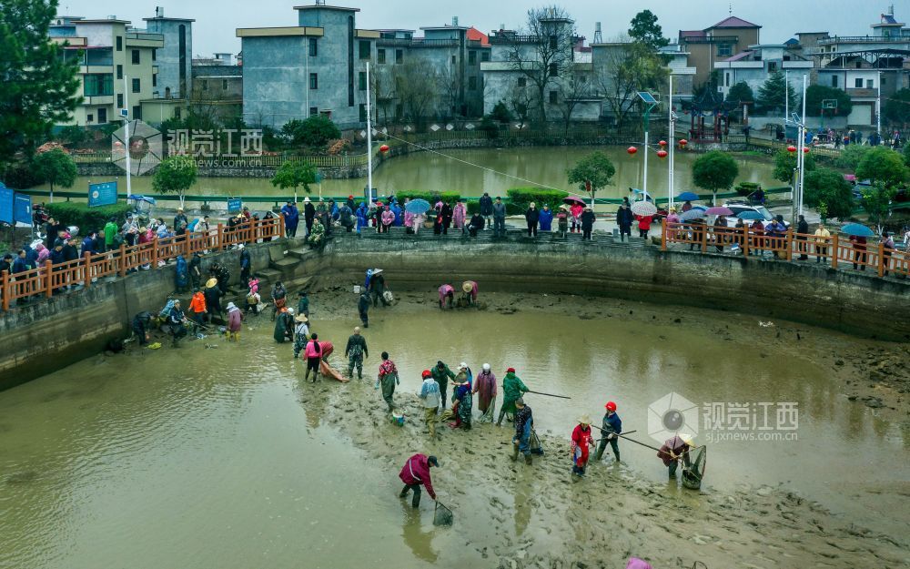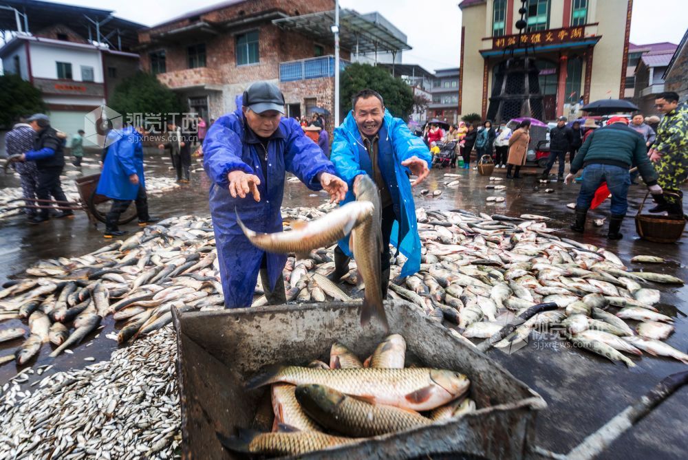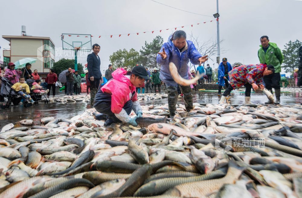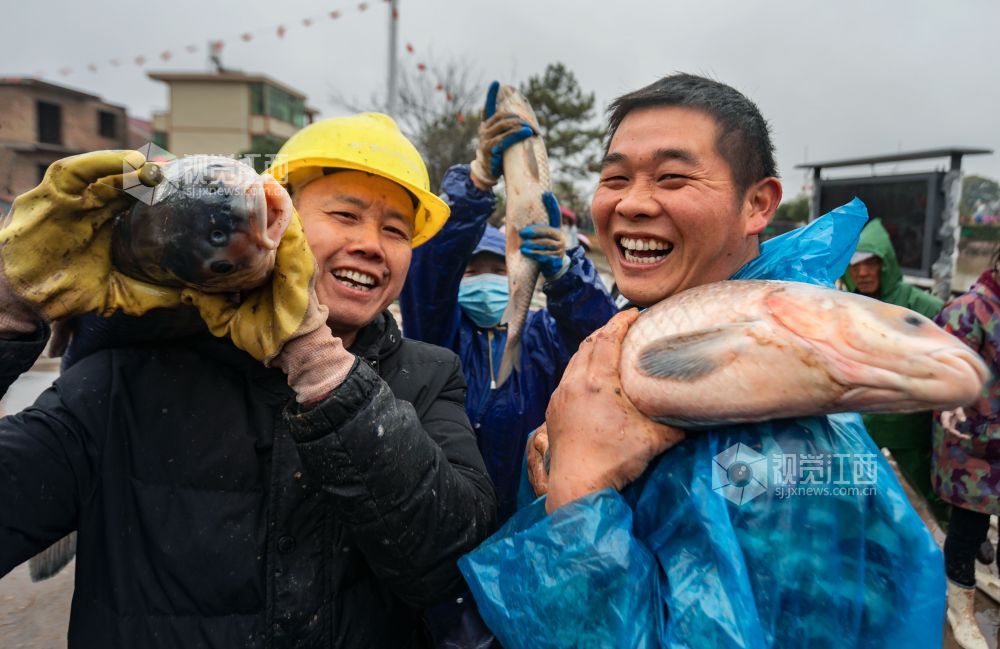 春节将近,1月19日,江西省永新县高市乡塘内村开展“家家户户分年鱼,欢欢喜喜过大年”的喜迎新春干塘分鱼活动。
