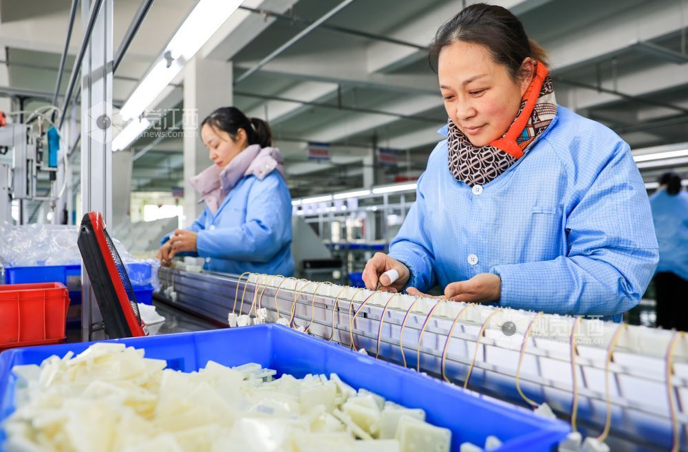 2024年1月24日,位于国家级九江经济技术开发区九江恒通自动控制器有限公司生产车间内,工人们正在赶制订单产品。