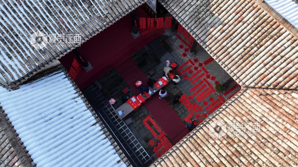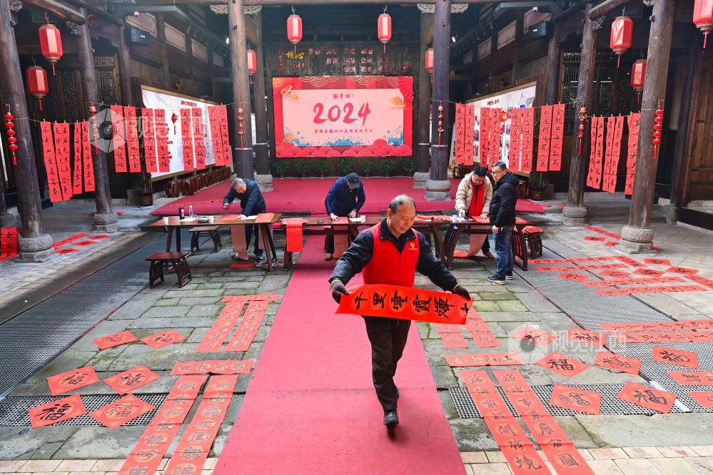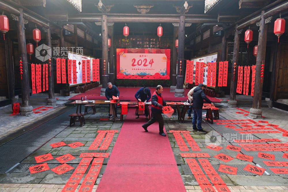 春节临近,江西省宜春市万载县文联书法爱好者在万载古城新时代文明实践中心写春联、福字免费送给市民,迎接传统新春佳节。