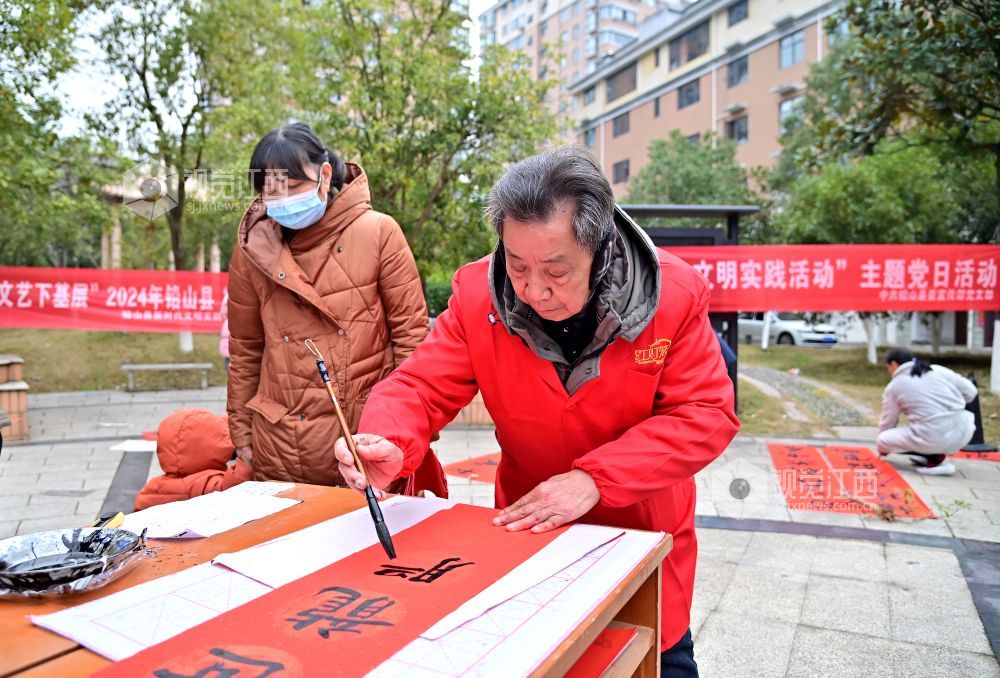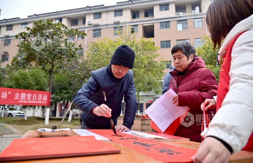 当日,铅山县委宣传部为满足群众需求,结合“党建+新时代文明实践活动”主题党日活动,组织县书法家协会书法爱好者,送“万福迎春”进社区,营造浓浓的春节氛围。
