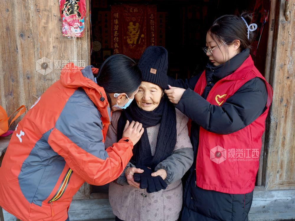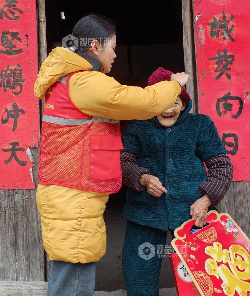 1月25日,在江西省上饶市铅山县太源畲族乡马鞍村,社工和志愿者为高龄低保的老人送上春联、糕点等新春慰问物资。春节临近,铅山县太源畲族乡民政服务站联合乡新时代文明实践所、铅山县农商银行陈坊支行开展“送温暖、迎新春”志愿服务活动,为困难家庭送上新春慰问物资,让困难群体也能过一个幸福、欢乐、祥和的春节。