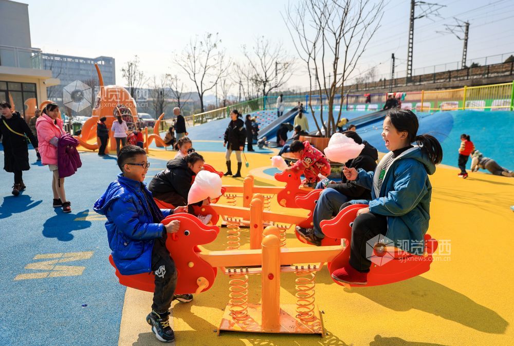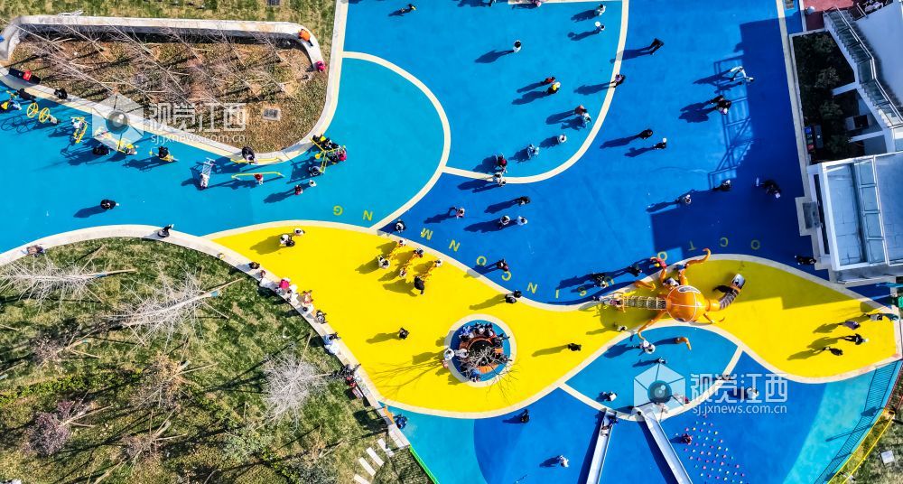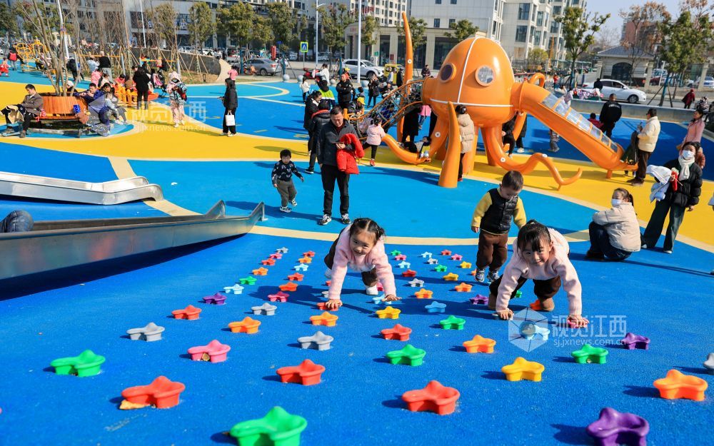 2024年1月28日,江西省瑞昌市,市民在新建的黄湾公园休闲游玩。