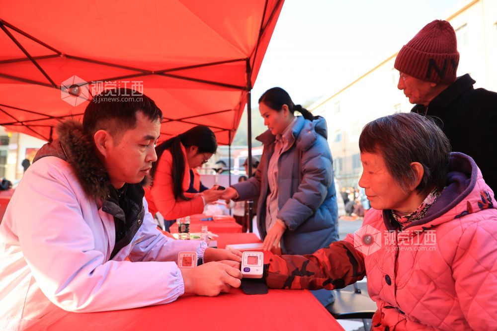 2024年1月27日,江西省瑞昌市码头镇江州社区新时代文明实践集市上,医务人员为群众提供义诊服务。