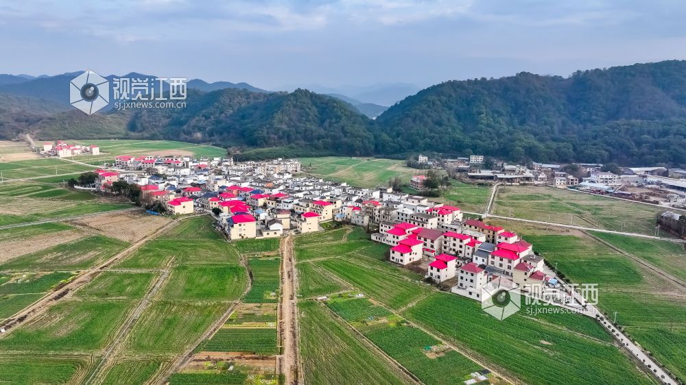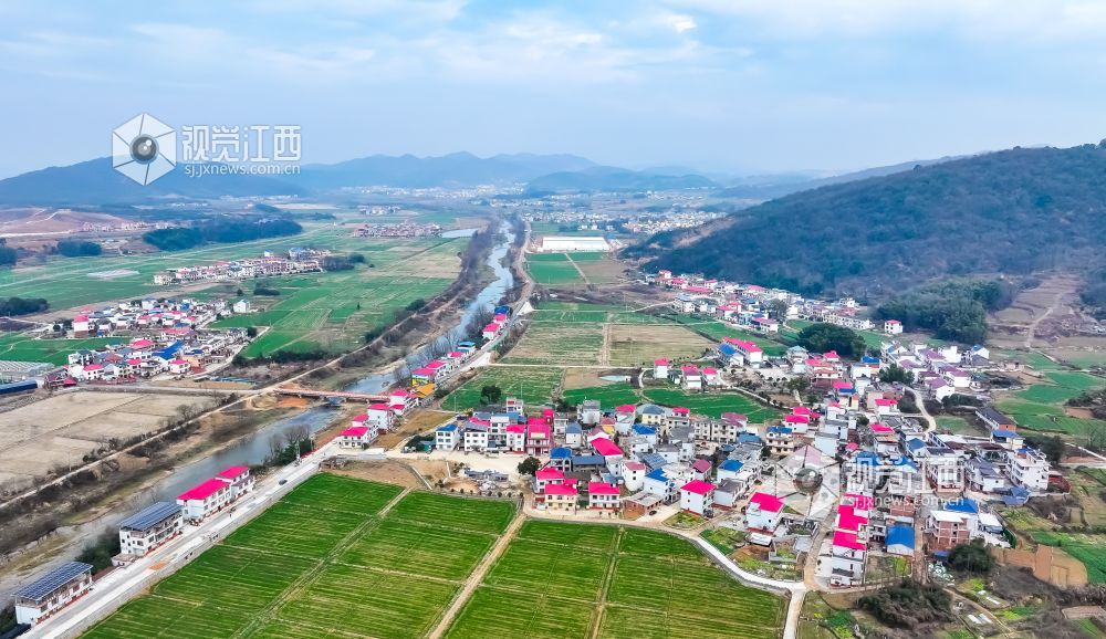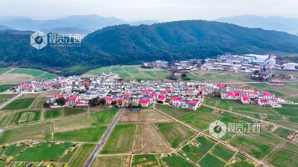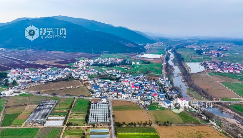 2024年1月30日,江西省瑞昌市桂林街道,阡陌纵横的农田、层峦叠翠的青山及错落有致的民居等相互映衬,勾勒出一幅和谐秀美的乡村画卷。