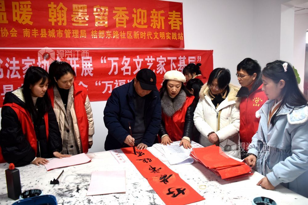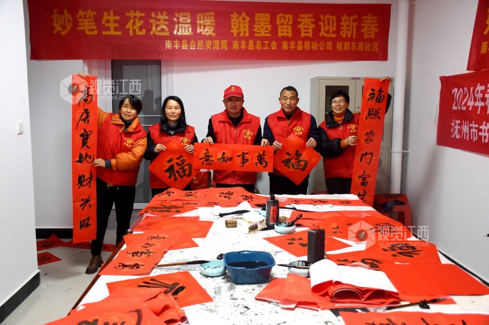 2024年1月31日下午,江西省抚州市南丰县总工会、县书法家协会、桔都东路社区等联合开展的“妙笔生花送温暖 翰墨留香迎新春”活动走进未来城小区,营造文明、健康、团结、和谐的新春气氛。